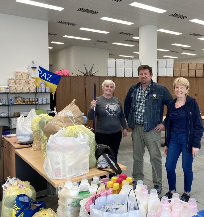 Igors Sics, which brings humanitarian aid every week, together with the volunteers of the Ukrainian Center