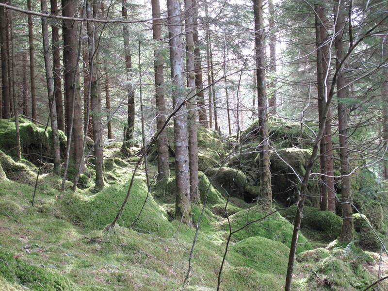 Ров, который прорыли в лесу. Видно, что слои игл чередуются со слоями мха.