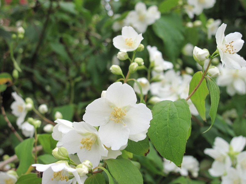 Барвинок цветет давным-давно, а чубушник (садовый жасмин) только начал.