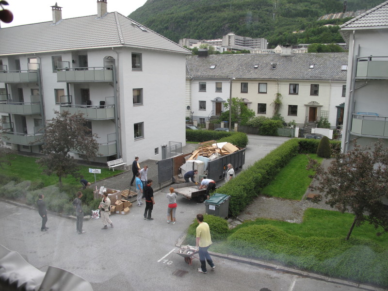 Жители нашего жилищного кооператива устроили дугнад, субботник. Дугнат — норвежское слово, обозначающее добровольный труд. Все должны были повесить бирки на свои вещи в общих подвалах, а лишние и необозначенные вещи вынести в заказанный контейнер. Утром контейнер вызывал большие сомнения. Вечером было принято решение заказать еще один на завтра.