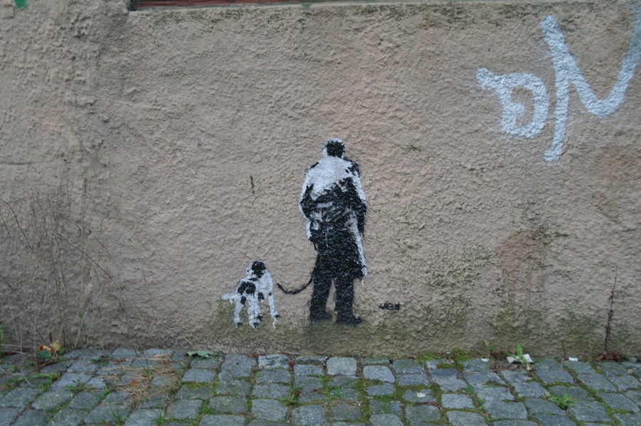 Девочка со скакалкой — пример граффити, расположенного более чем на одной плоскости.