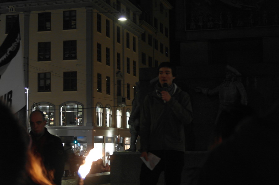 Полчаса люди стояли с зажженными факелами. Факел можно было приобрести тут же, у организаторов, за 20 крон. Это общая практика на факельных шествиях. Детей пришло-приехало около 20. Больше всего было студентов.