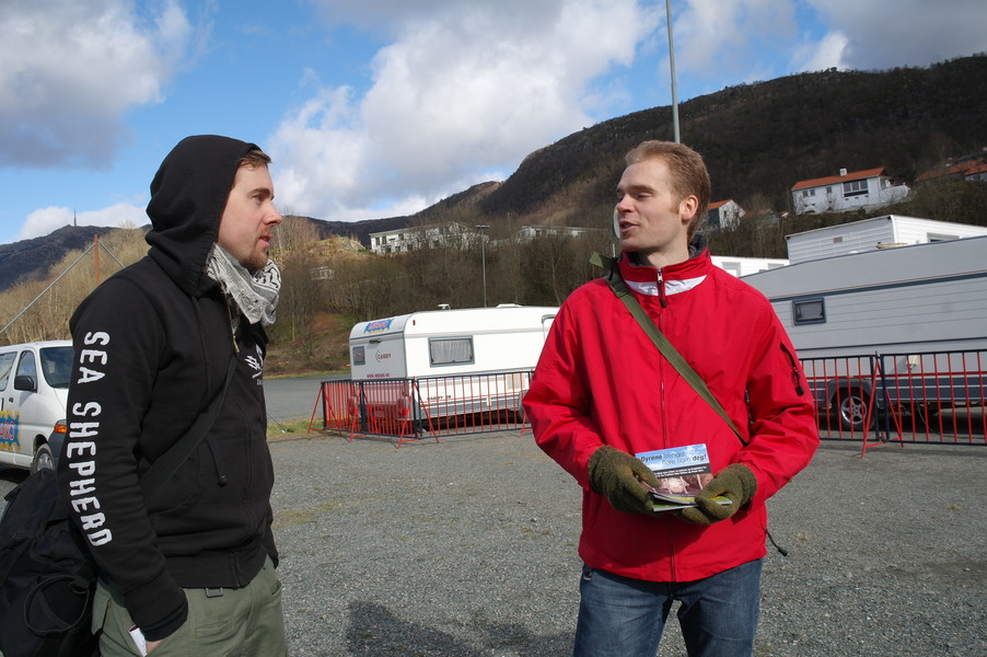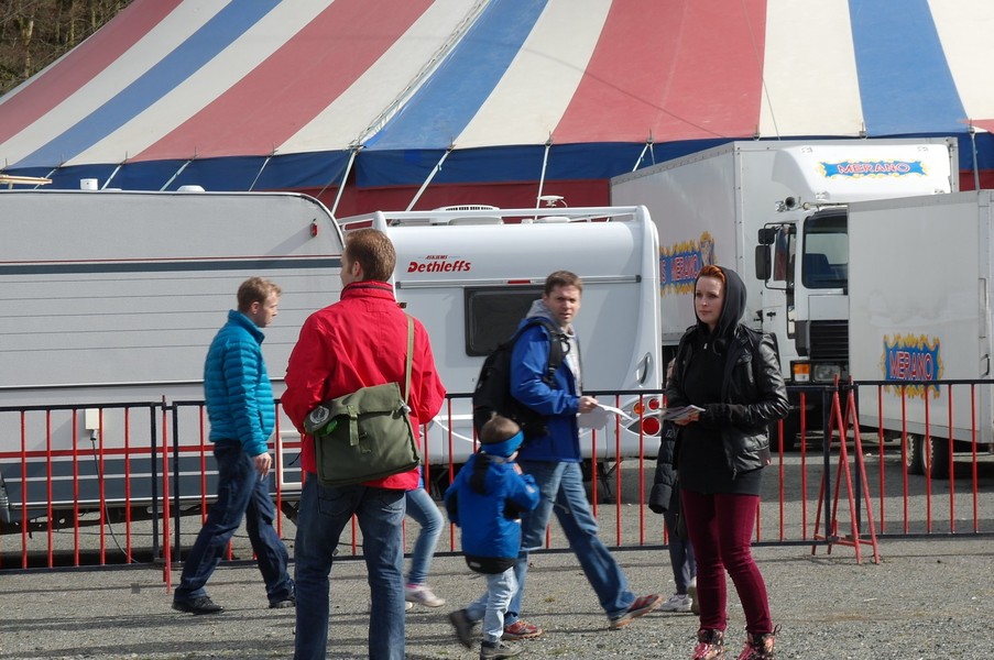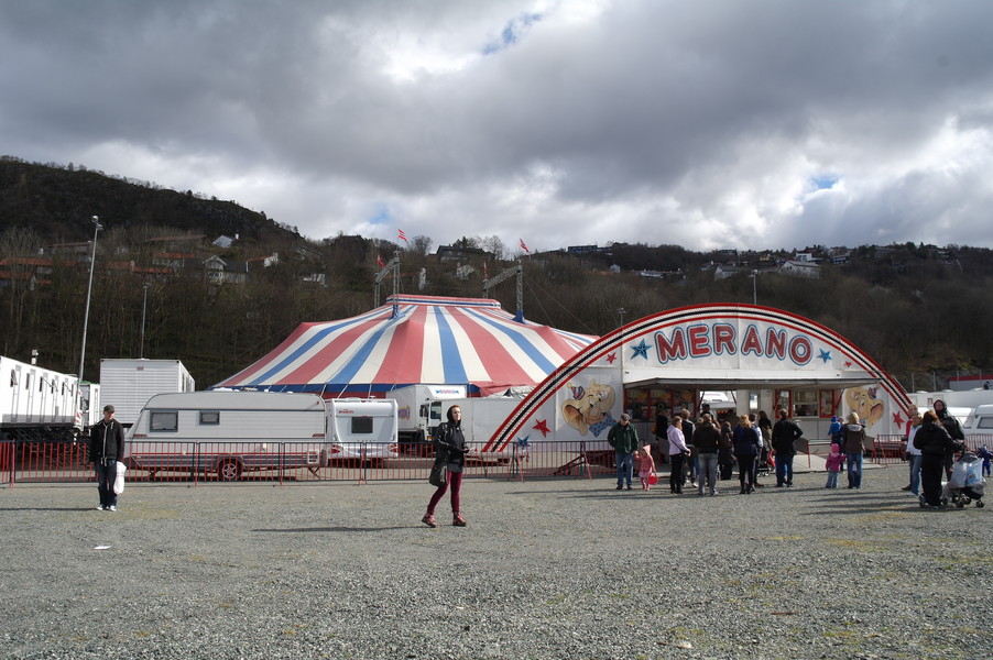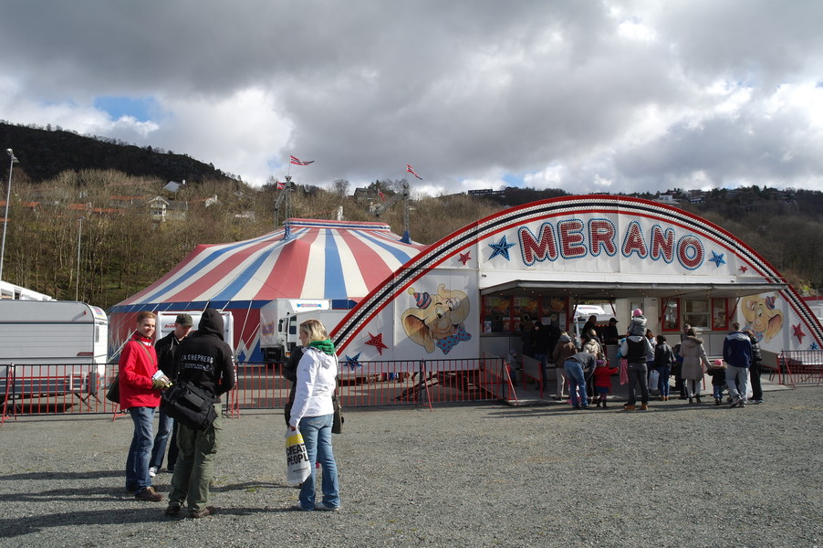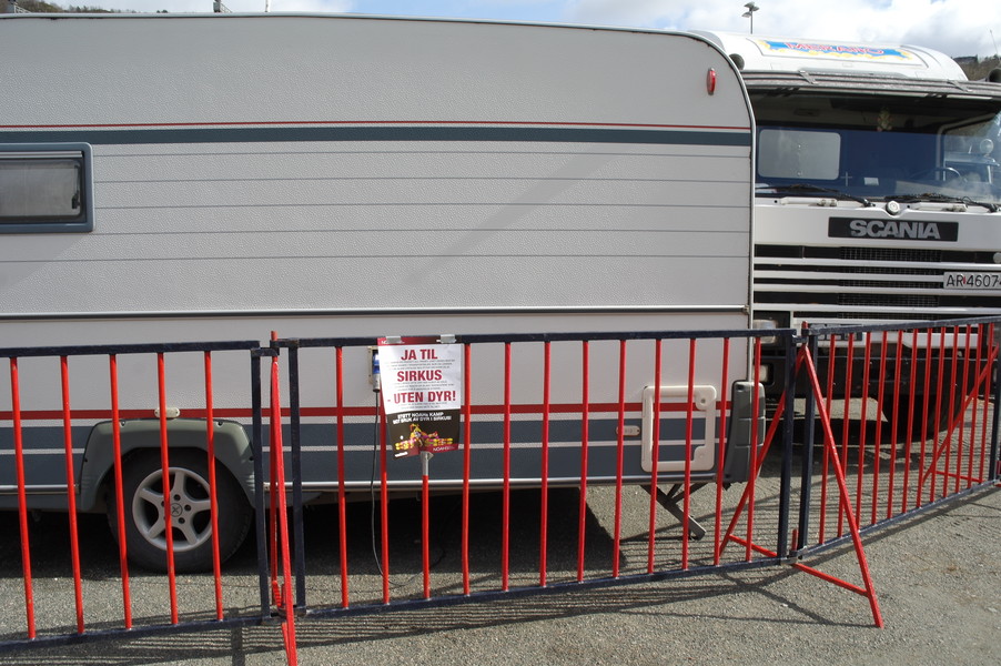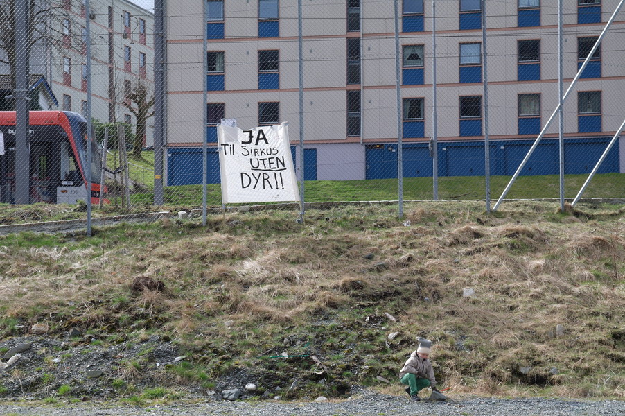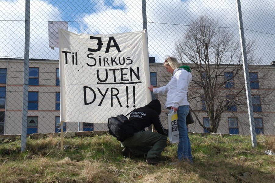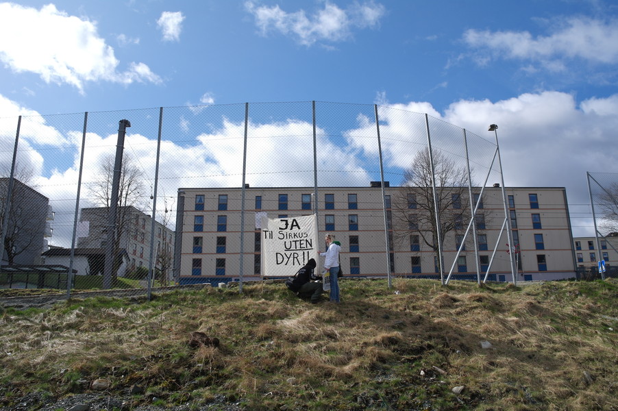 31 марта 2012 года в 14:00, в субботу, за час до циркового представления, началась зоозащитная акция в Бергене. Собралось десять активистов NOAH, которые развернули напротив ворот транспарант «Да цирку без животных», все заборы на подходах к шапито заклеили плакатами, раздали всем зрителям поучительные листовки о том, что приходится переносить цирковым животным.Каждая машина в округе также была украшена листовкой. Когда представление началось, выбежал охранник и начал срывать и бросать на землю плакаты.