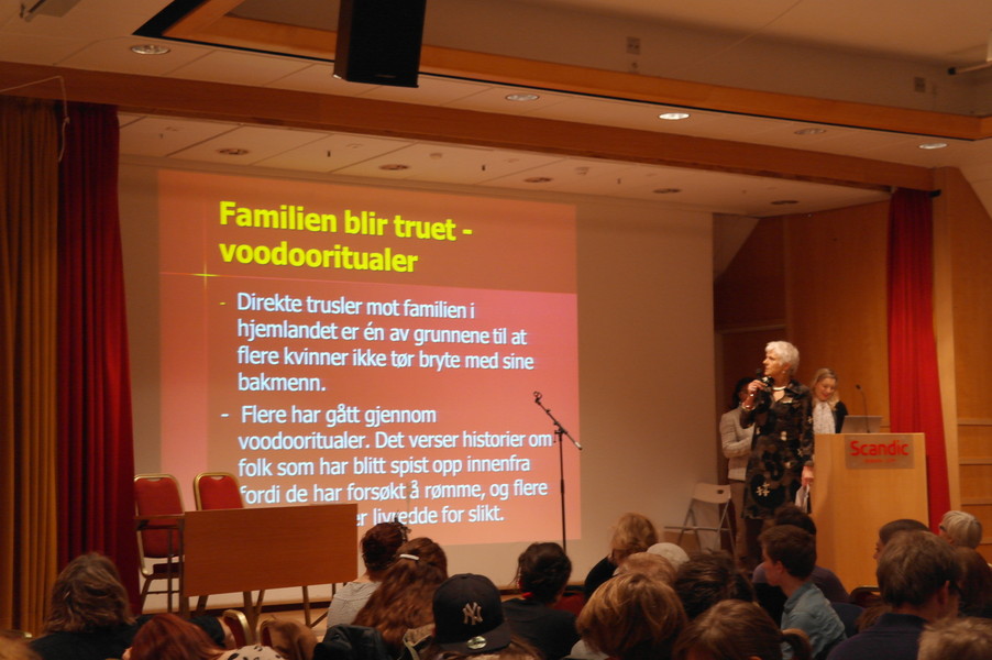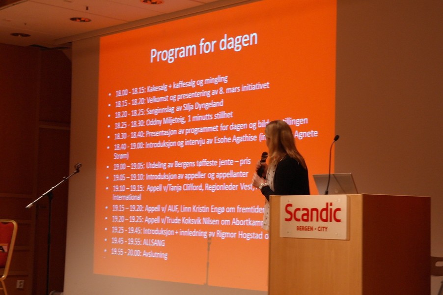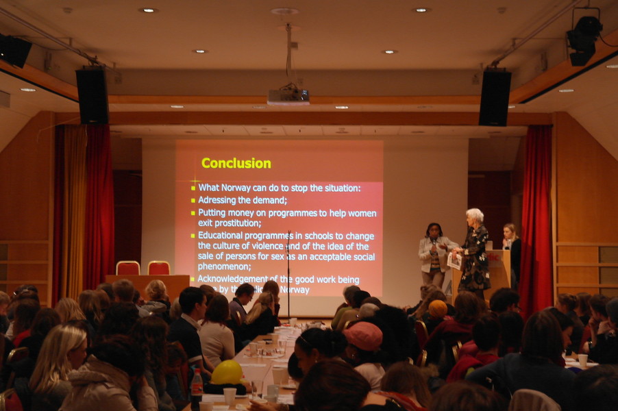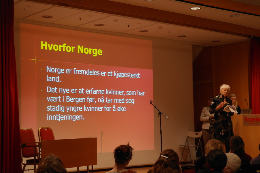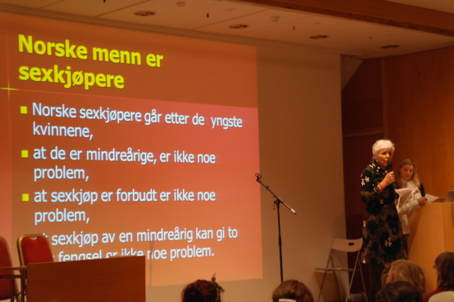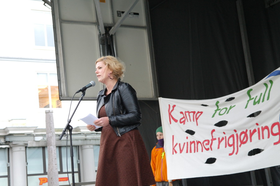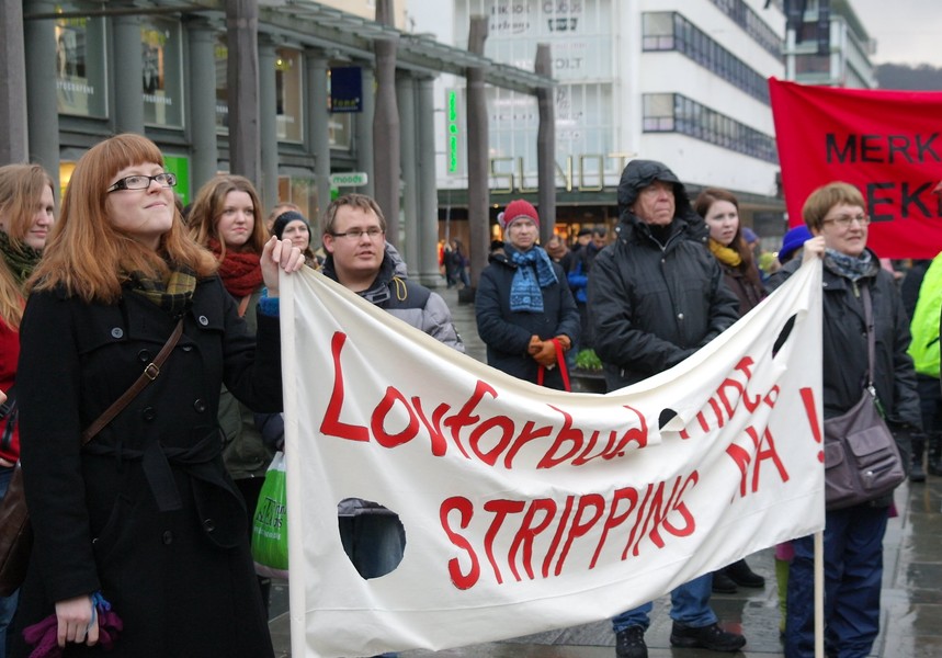 Agnete Strøm из Kvinnefronten говорила о необходимости запретить стрип-клубы, о правах женщин, о взаимосвязи стриптиза и т.н. криминального секс-рынка.