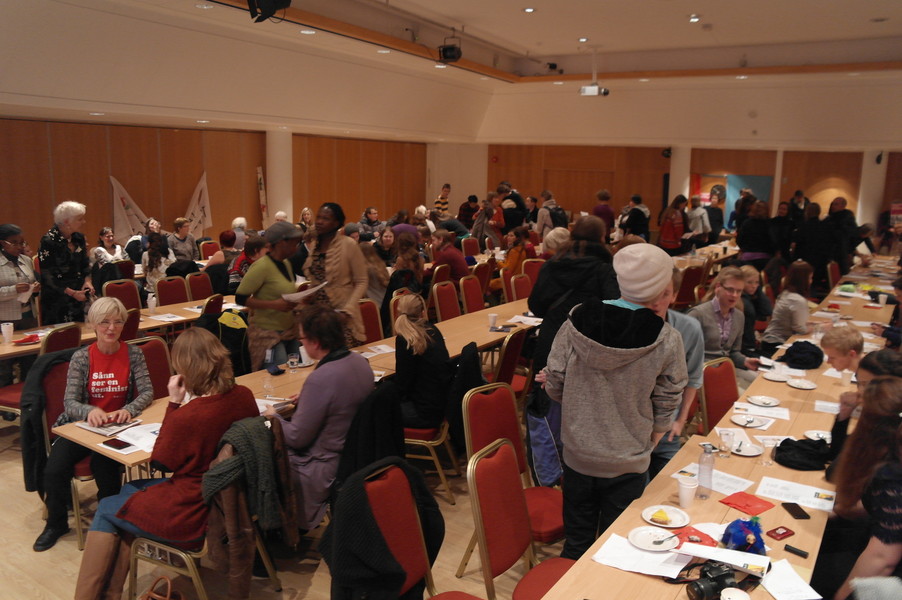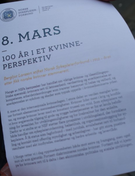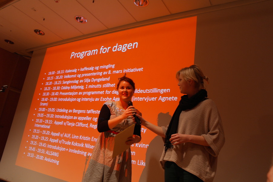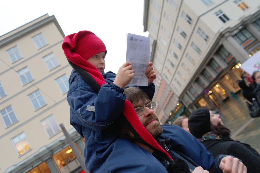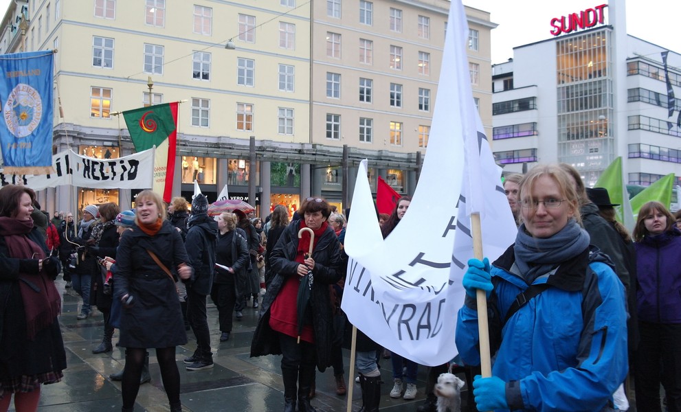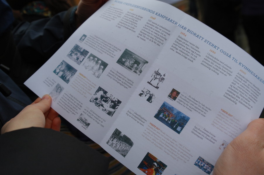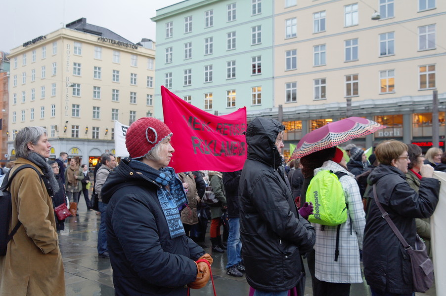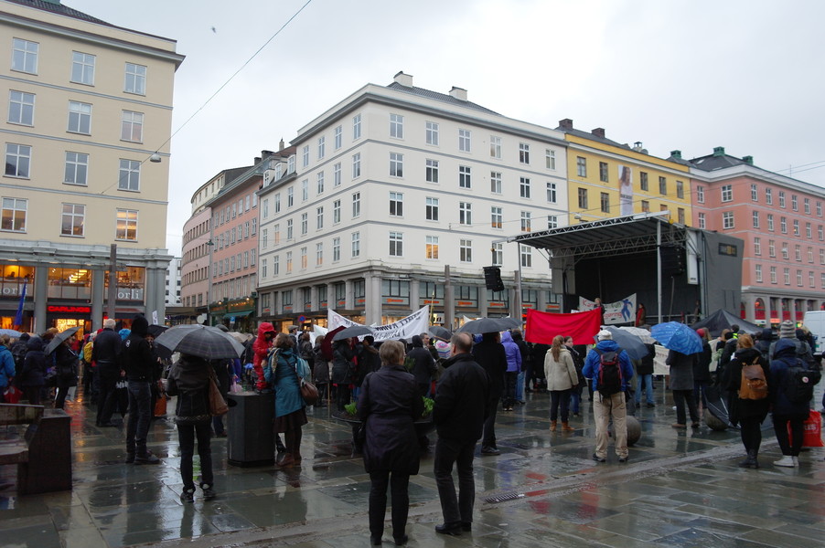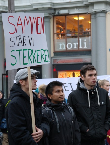 Выступления начала Oddny Irene Miljeteig из SV-партии. Она объявила минуту молчания, назвав имя Garolin Nesaraja, беженки из Шри-Ланки, совершившей самосожжение после пяти лет ожидания политического убежища в Норвегии. Вместе с Гаролин погиб её маленький сын Rojgar. Больше о Гаролин