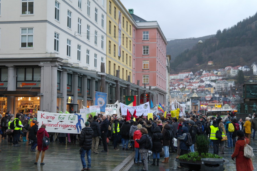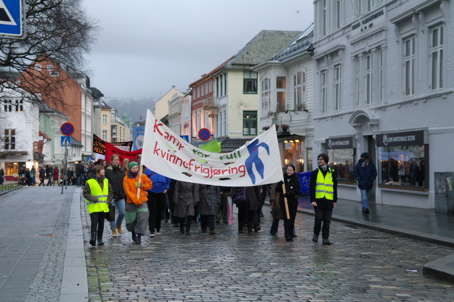 Только два ежегодных бергенских активистских события сопоставимы по масштабам с Феминистским фестивалем — гей-парад и первомай. Антивоенные, антифашистские и зелёные демо проходят менее ярко.