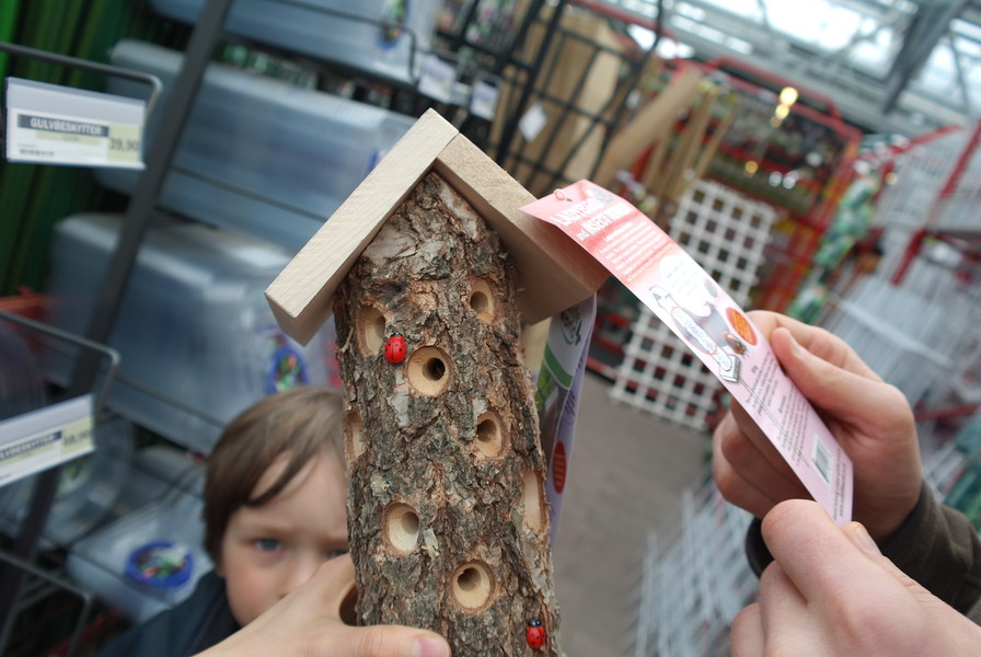 Продаётся в Планташён. Коровки в домике зимуют и прячутся от дождя. Приманивание коровок — общемировая практика для борьбы с садовыми паразитами. В домики могут класть спецкорм или брызгать спецвещество-аттрактант.