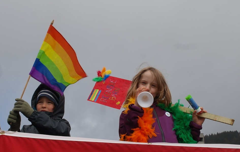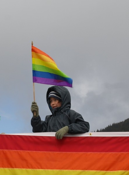 Терентий вместе с другими рейнбоу-детьми на головной машине Прайда-2012:.