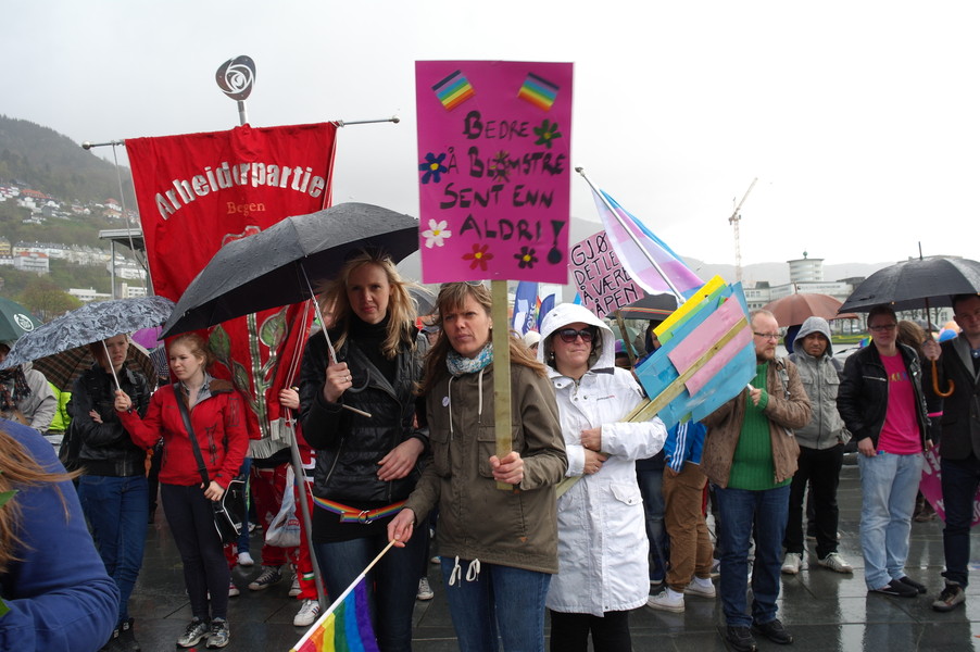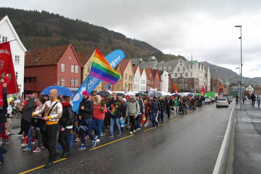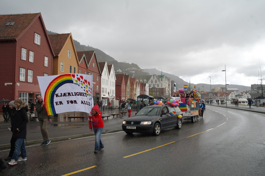 Гей-неделя в Бергене в этом году проходила с 9 по 13 мая. Собственно, она завершится только сегодня — радужной мессой в  Korskirken (в центре города). Завтра же будет радужный тур по горам и кинопоказы. Главное событие — парад — состоялся 12 мая. Это был потрясающий праздник любви. Но давайте по порядку. Вот где я сумела побывать.