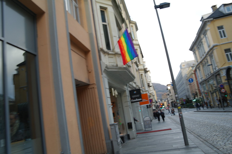 Гей-бар Fincken находится в центре города, на Nygårdsgaten 2a.. На нём всегда развевается радужный флаг.