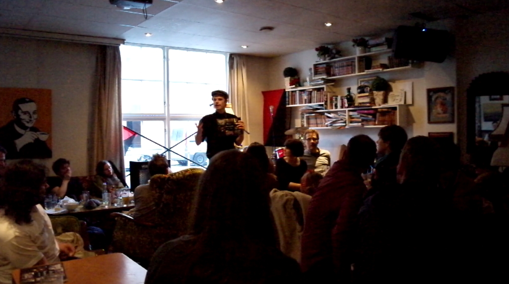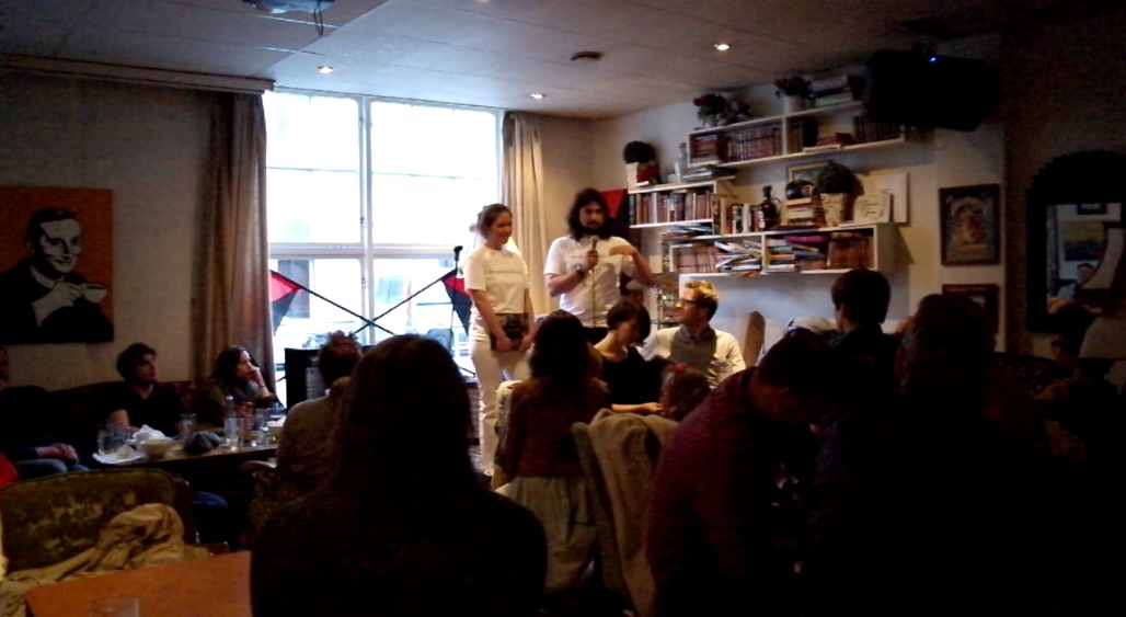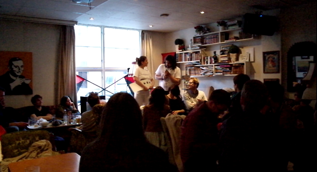 Любава и Али представляют книгу «Город говорит» в баре «Виктория» 1 мая 2012 года.