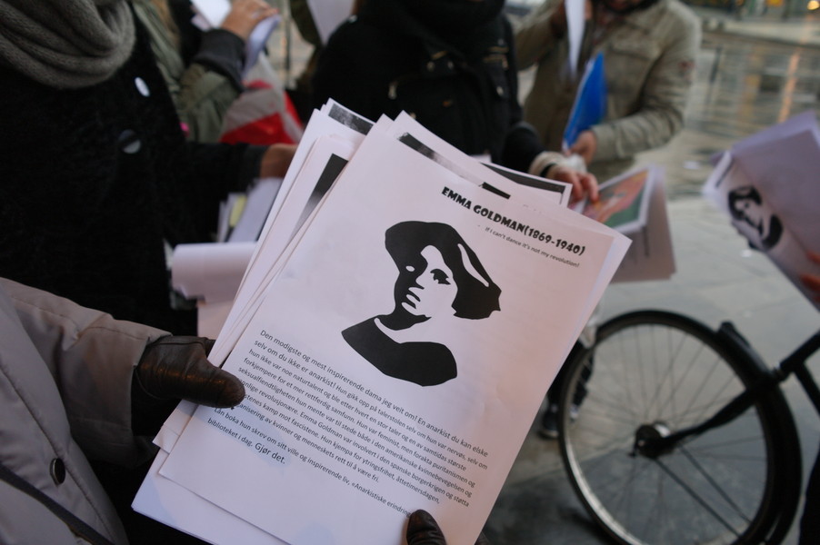 На следующем фото: сверху Красная Эмма, снизу — Сара Азмех Расмуссен, квир, писательница, норвежка сирийского происхождения, устроившая сожжение хиджаба 8 марта 2009.