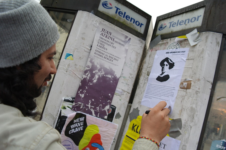 Мы с Али пошли клеить плакаты в сторону университета. Али и американская феминистка и анархистка Эмма Голдман: