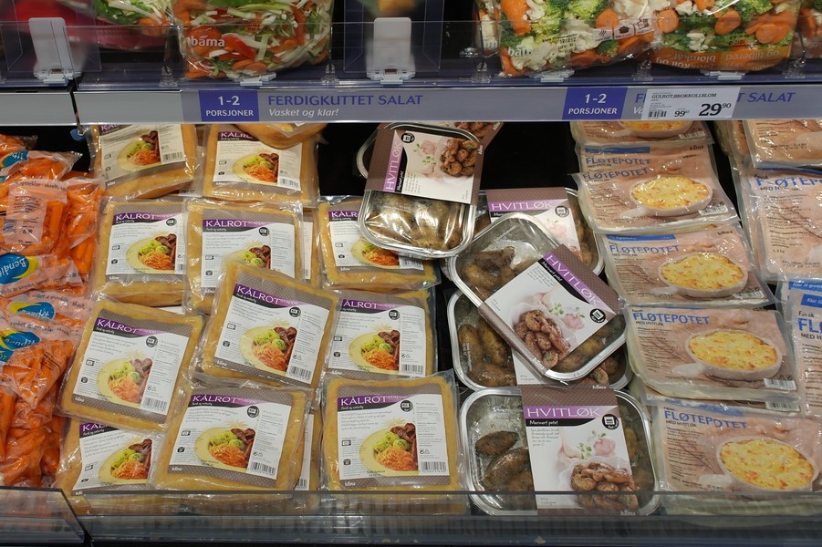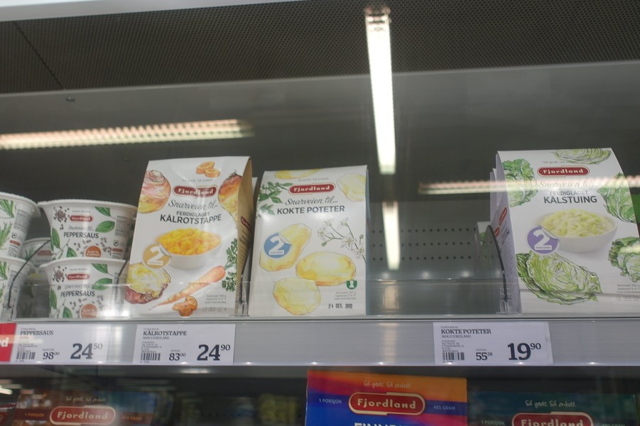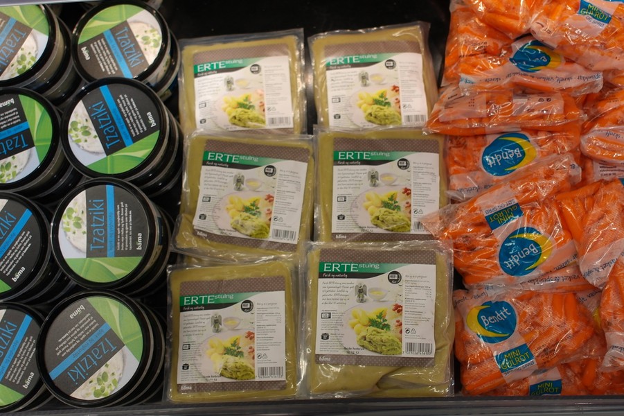 Пюре из горошка, моркови, картошки и даже капусты — обычный норвежский товар. Не представляю себе целевую аудиторию этих продуктов — может быть, кто-то из читателей «Бергенского зайца» разъяснит тайный смысл этих пюре.