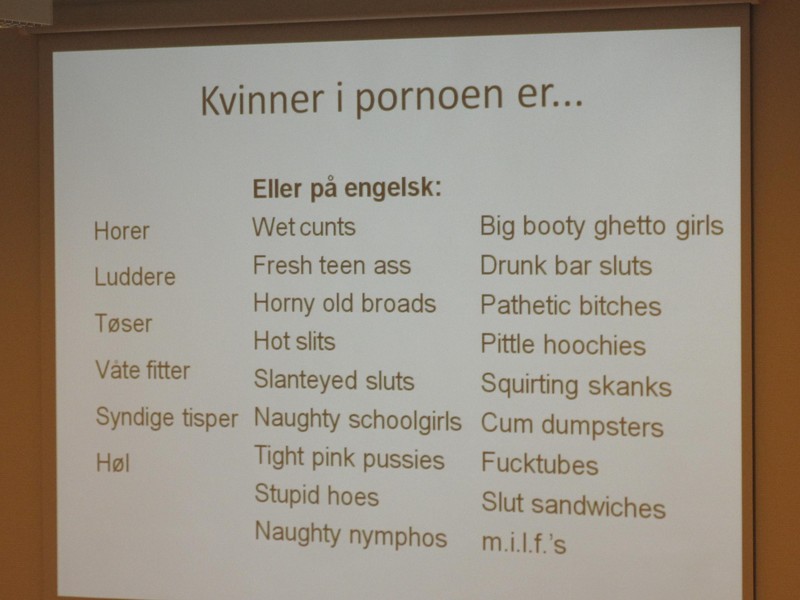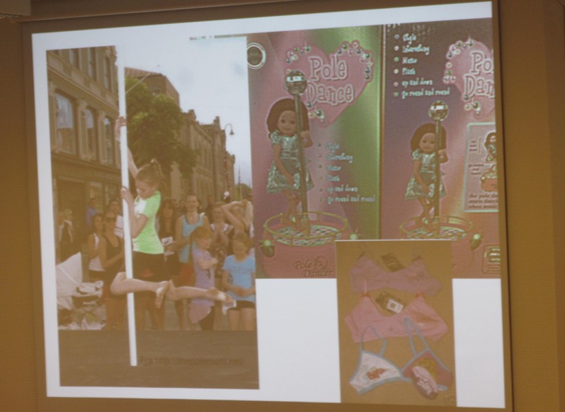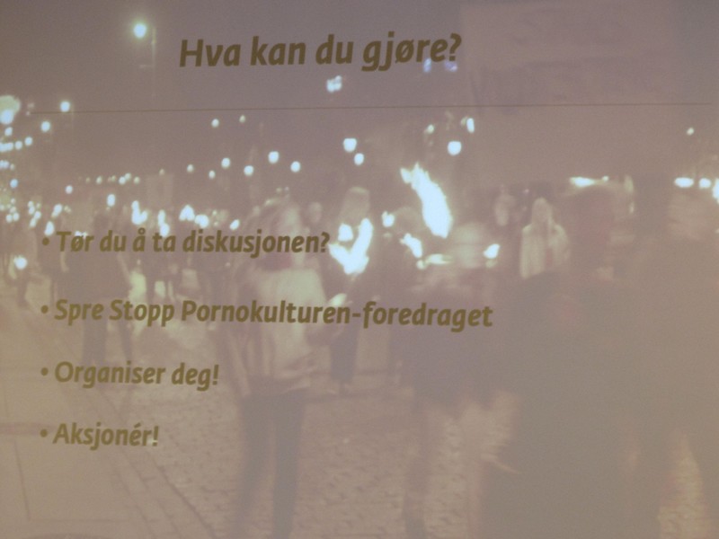 Чудесный слайд из доклада Marielle Leraand (фото выше) «Kampen mot porno og hvorfor den er så viktig» — норвежская реклама курсов детского стриптиза.