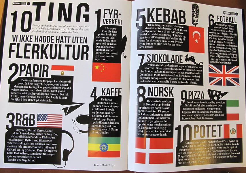 В перерыве я нашла антиксенофобский разворот в журнале Rødt: 10 культурных заимствований.