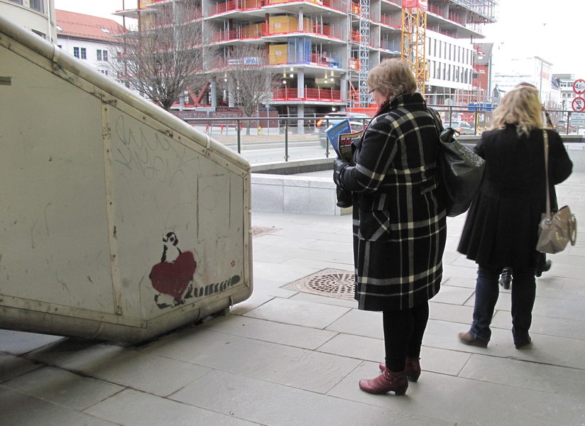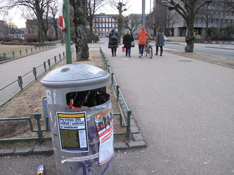 Это моя любимая картинка. Ева наклеила плакат на мусорный бак на Торгаллменнинген.