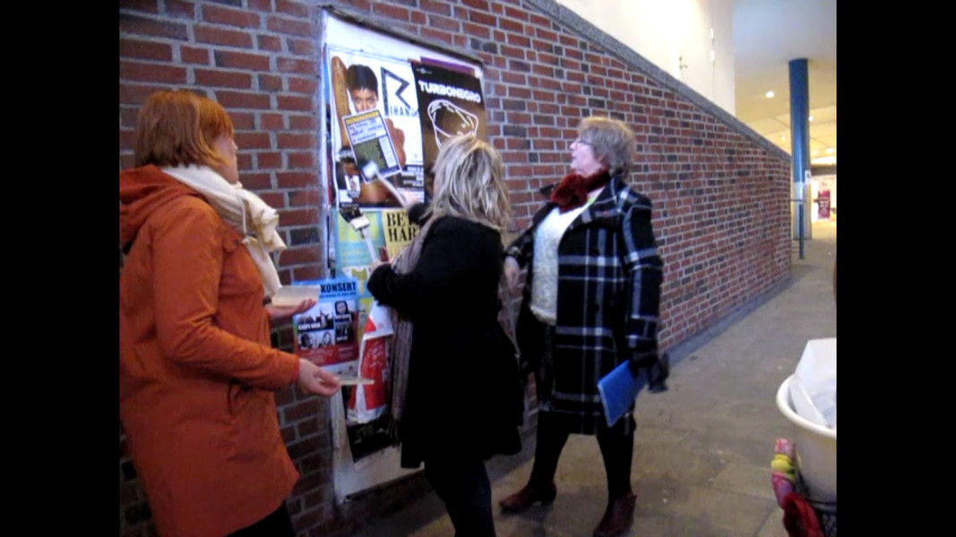 В этот момент самая большая любительница плакатов замерзла и пошла домой. И дамы продолжили акцию вчетвером.