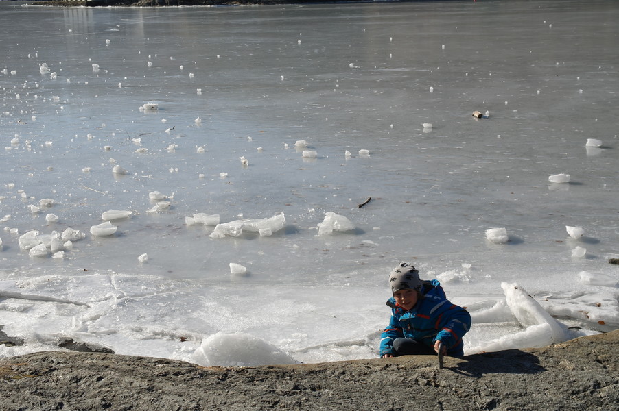 Вода около дома короля замерзшая и на льду следы норвежского энтузиазма — доски, палки, куски льда, камни.