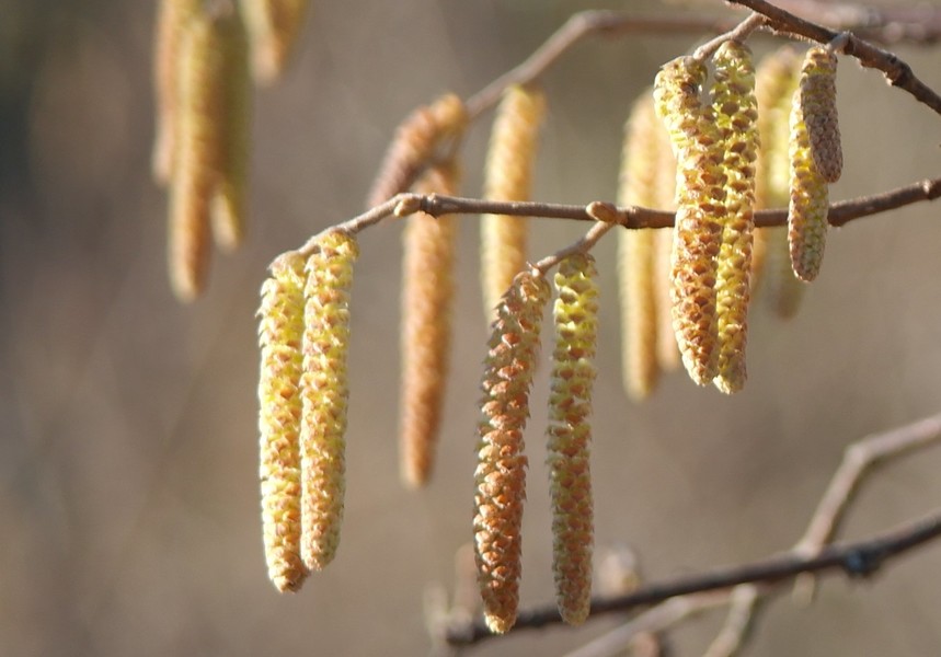 В розарии всё спит, а ветроопыляемые деревья вокруг начали сезон.
