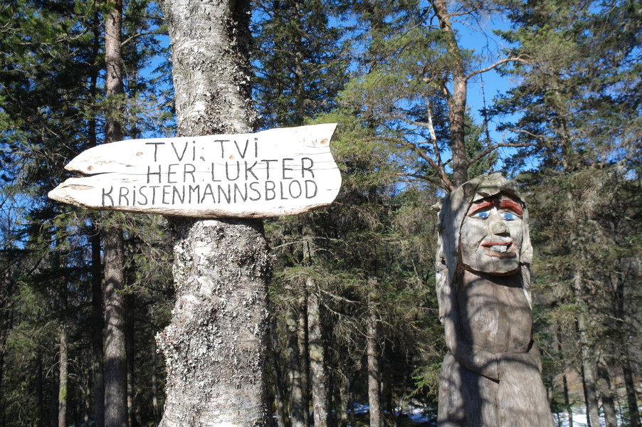Найти место, где всё происходит, не сложно — люди в костюмах гигантских цыплят сидят на площадке с троллями за Флойбаненом, там, где паучья сеть, мостики, домики и трогательные таблички на деревьях:
