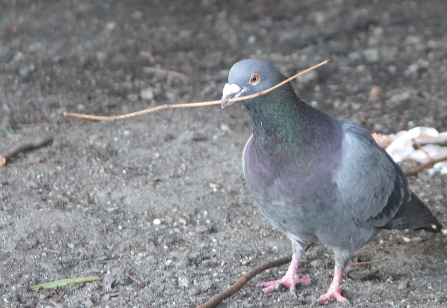 На конечной остановке бибанена в центре, на Бипаркене, в кустах всегда сидят разные птички. По дороге домой мы обнаружили голубя, который искал стройматериалы: