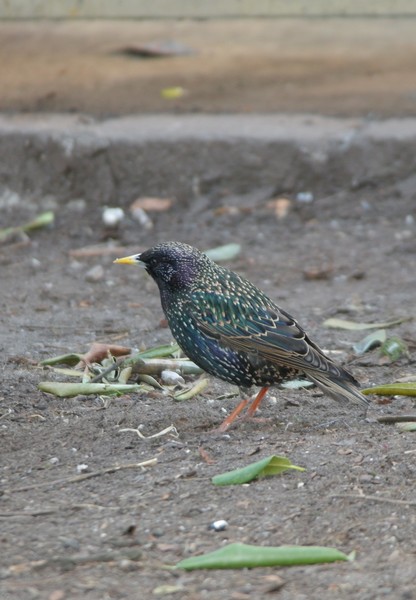 Теперь, когда я замечаю столько птиц, я стала больше про них читать. Наконец я поняла, кто именно называется скворцом, а кто дроздом (видов дроздов оказалось огромное количество) и, самое удивительное, что все те птицы, которых я раньше принимала за разные виды скворцов — это был один и тот же вид Sturnus vulgaris, Скворец обыкновенный. Кто бы мог подумать, что у такой птички есть разные окраски на каждый сезон. На фотографии вверху зимний наряд скворца — пятнышки на голове и на теле — это вовсе не украшения. Это перья истрепались за зиму:) После весенней линьки скворцы становятся чёрными. Даже клюв у скворца меняет цвет: желтый он только в период размножения, а так чёрный.