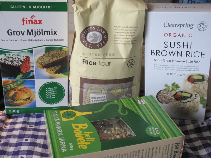 Я вообще что-то пеку очень редко, но вот мука, которую мы покупаем, если нужны блины-пироги. Без глютена.Также на фото серый рис и зеленая гречка.