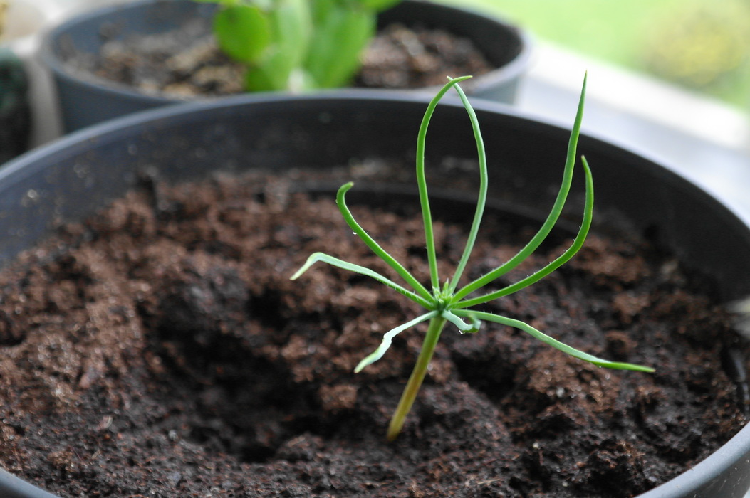 027Однако может быть и вам будет интересно узнать, что в Бергене на балконе прекрасно прорастают семена пиний, собранные летом в Италии. На первой фотографии не хвощ и не травинка. Пиния — это сосна. Росток пахнет хвоей и отрастил маленькие иголки. Попробуйте посадить кедровый орех из шишки.