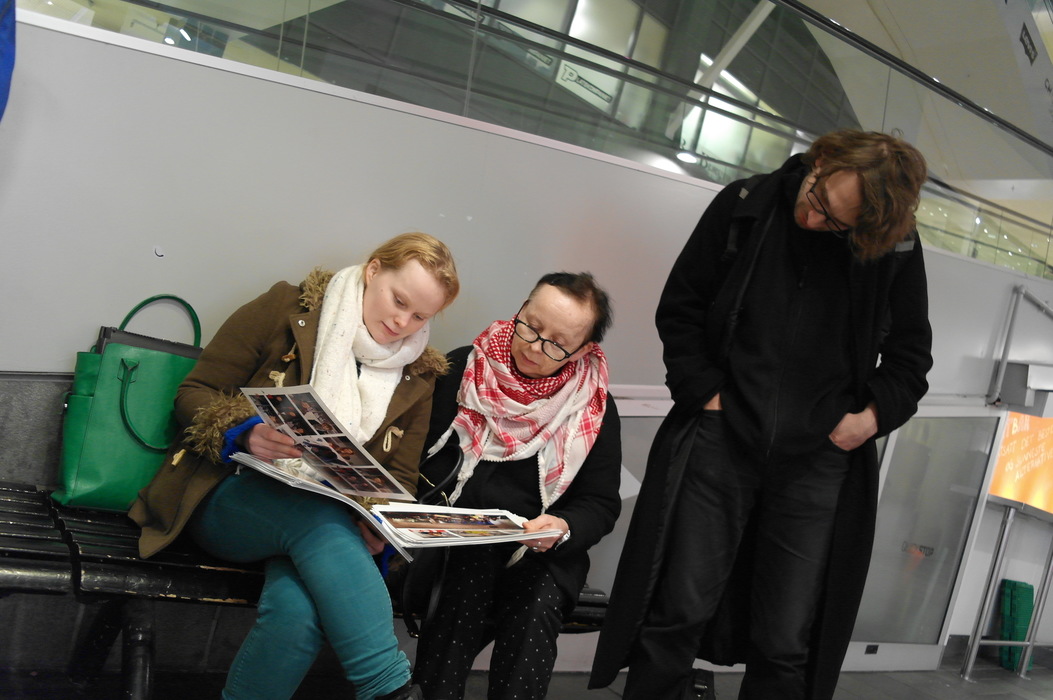 Мария, Турилд и Хенрик смотрят первую распечатку нашей новой книги про бергенский активизм.