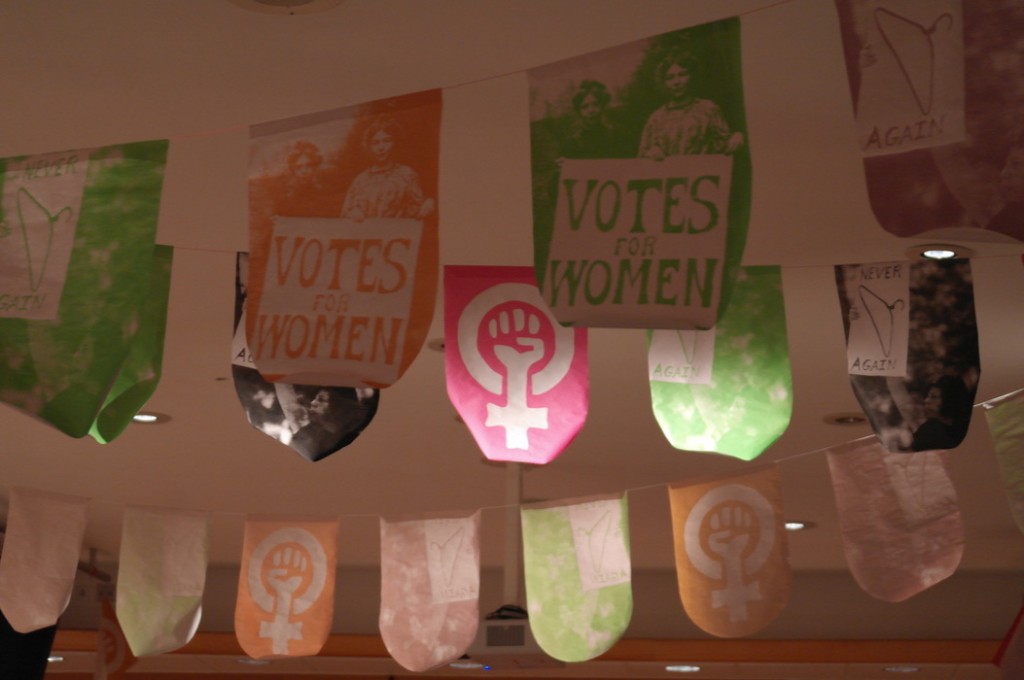 Зал украшали шведские феминистки Hedvig Hanson Johannesson , Maria и Helle. Они сделали много вымпелов с символами и фотографиями, важными для фемдвижения.