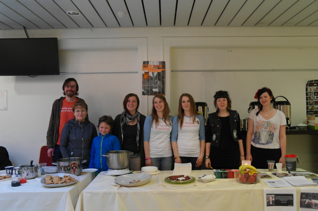 В холле около зала располагалось веганское кафе активистов NOAH («Ной», норвежская зоозащитная организация). На первой фотографии вы видите замечательных активисток NOAH Camilla Dahlberg и Jeanett Dahlberg.