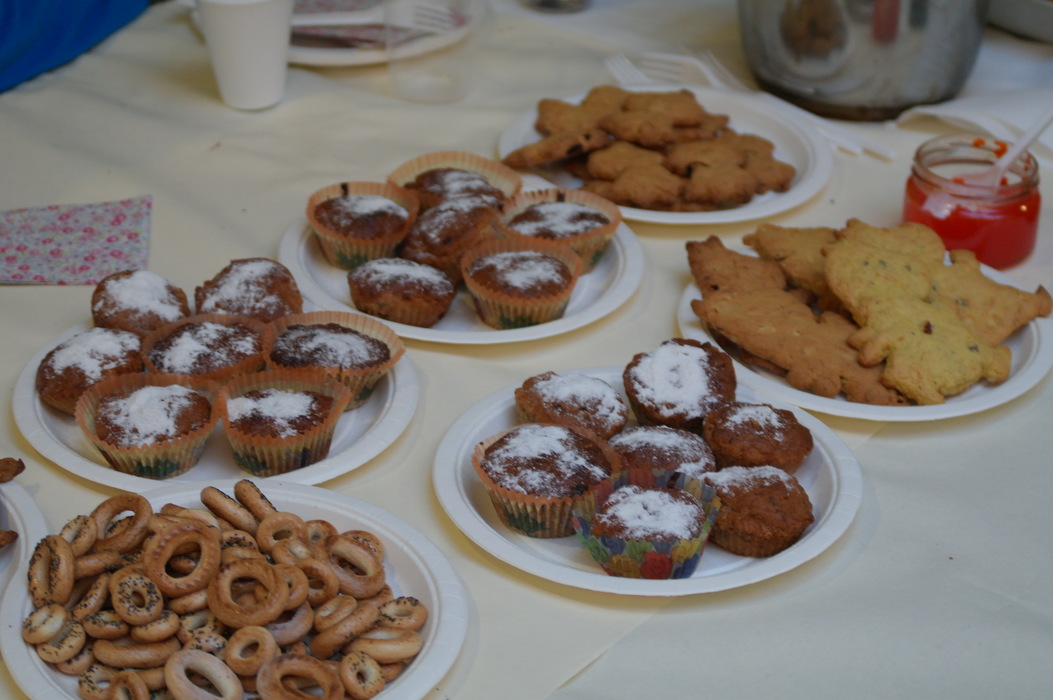 Мы приготовили маффины с вишнями, муми-печенья(только муми-мамы и крошки Мю), торт, рис с овощами, свекольные бургеры, фруктовый салат и привезли вег-колбасу, вег-икру из Москвы.