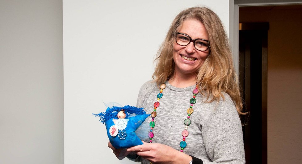 И — самое главное — приз Bergens tøffeste jente 2014 был этичным. Поскольку я его вручала, то хорошей фотографии — на которой было бы видно звезду — сделать не получилось. Но журналисты бергенской газеты сфотографировали Mette Løkeland Stai и вы можете собственными глазами увидеть приз: