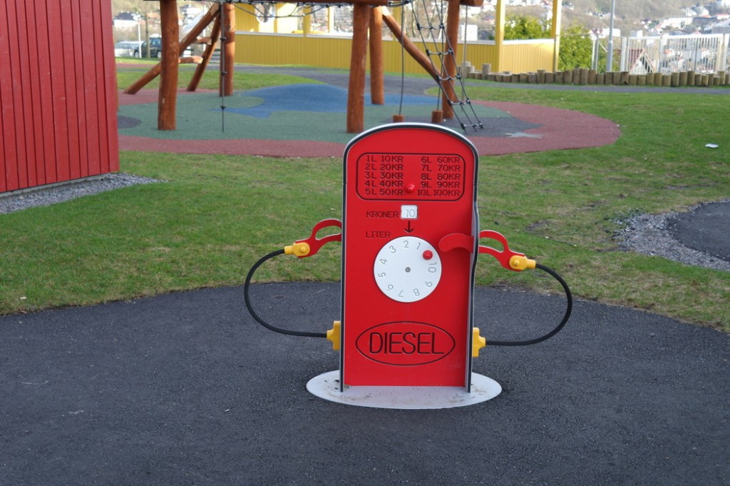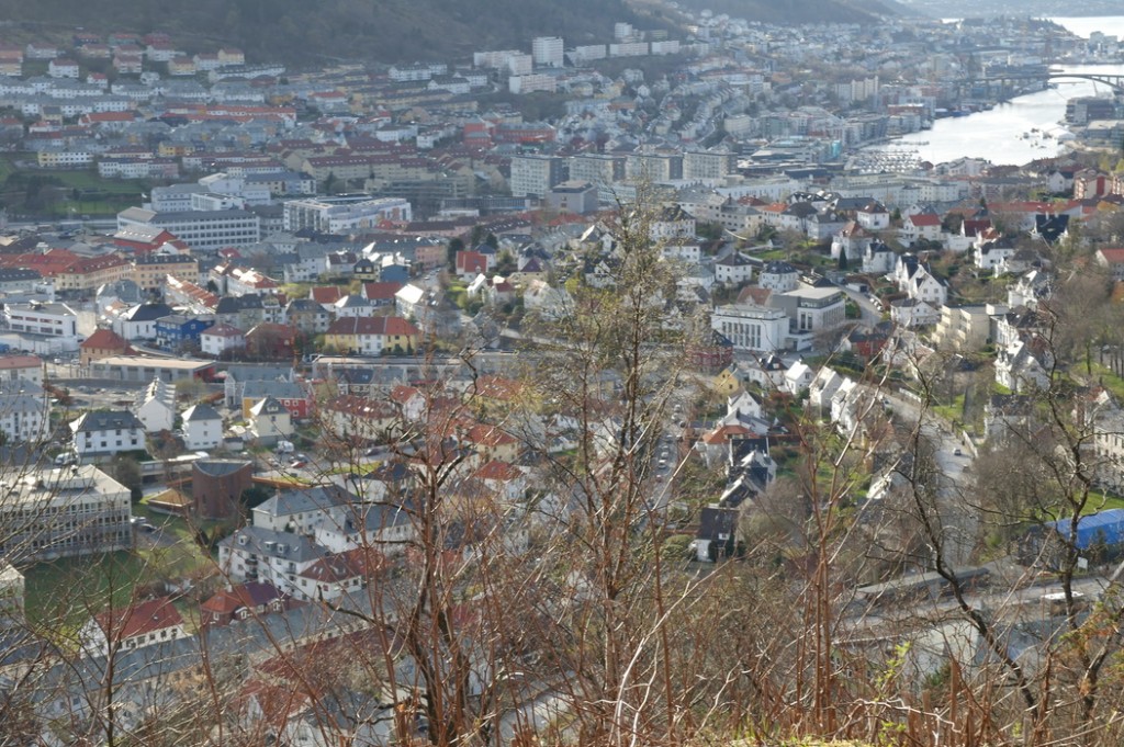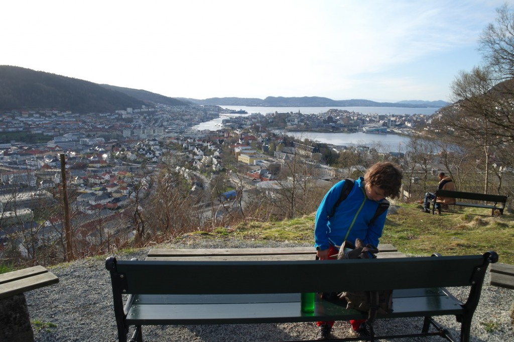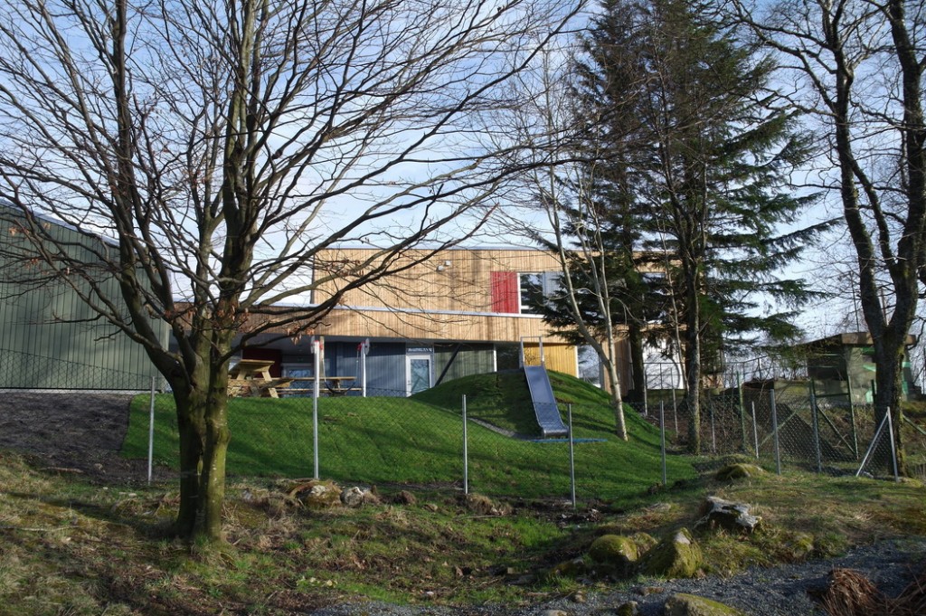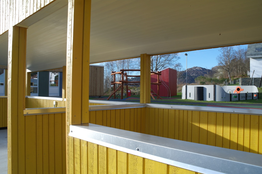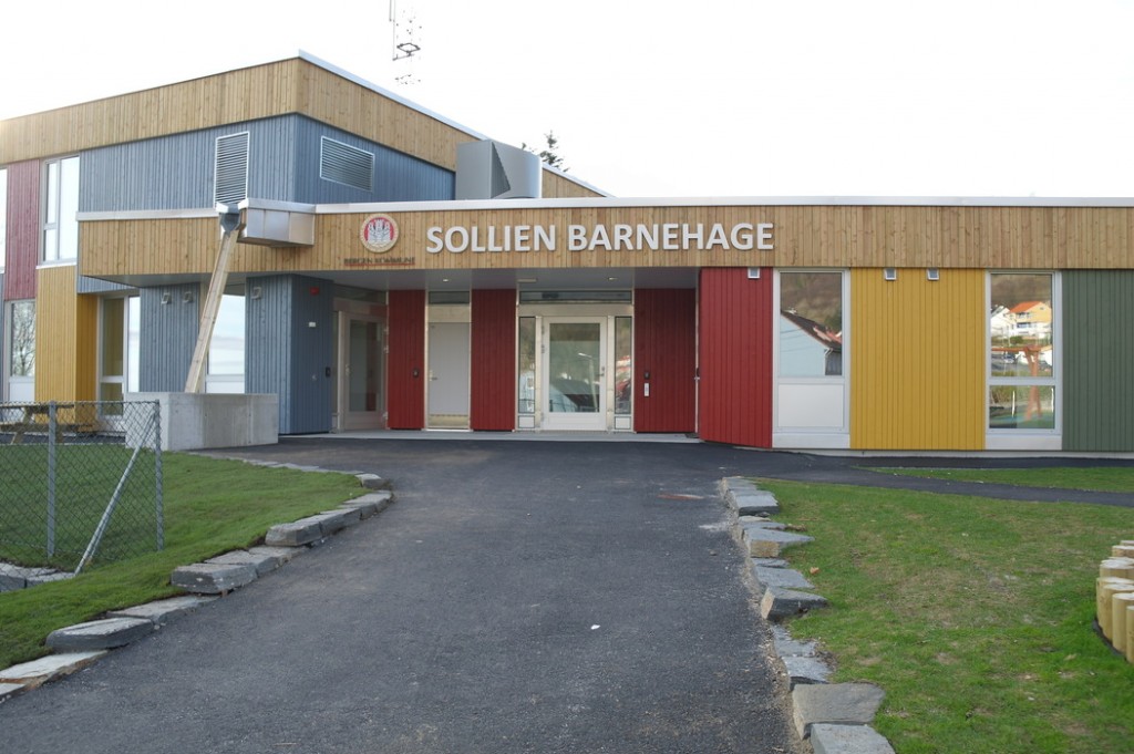 Этот сад мы с Терентием увидели, когда шли с горы Ульрикен домой. Мы сфотографировали площадку, парковку и дома вокруг, а также вид на центр города, который открывается со смотровой недалеко от детского сада. Конечно, это не самый идеальный сад — он находится прямо на автодороге и территория сада не очень велика. Но всё равно есть на что посмотреть и чему удивиться.