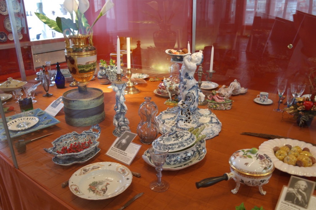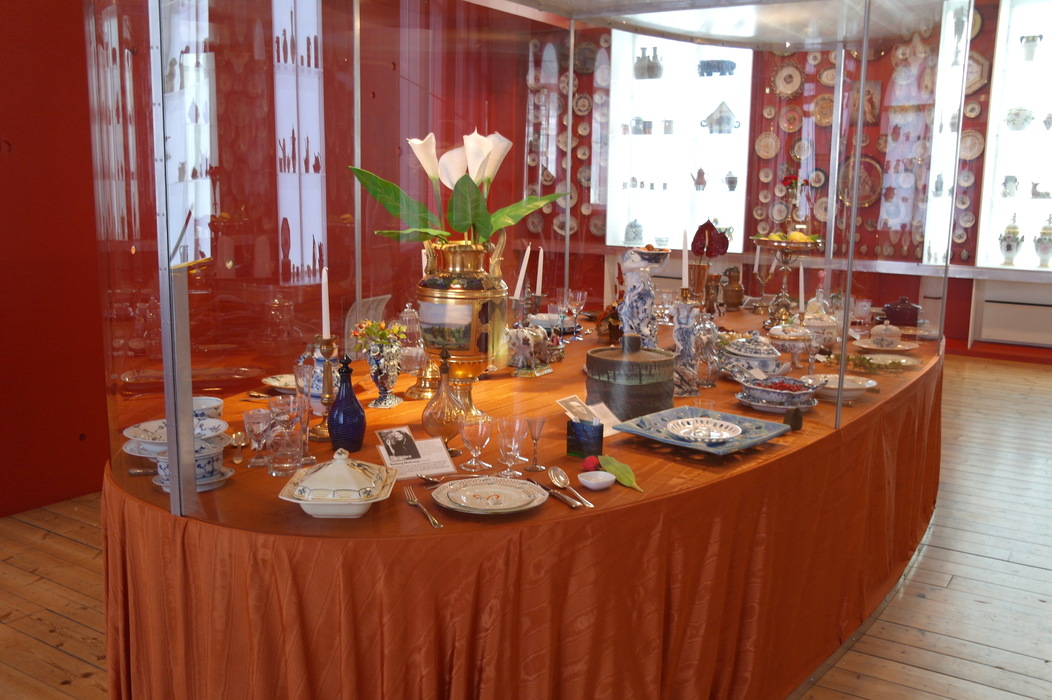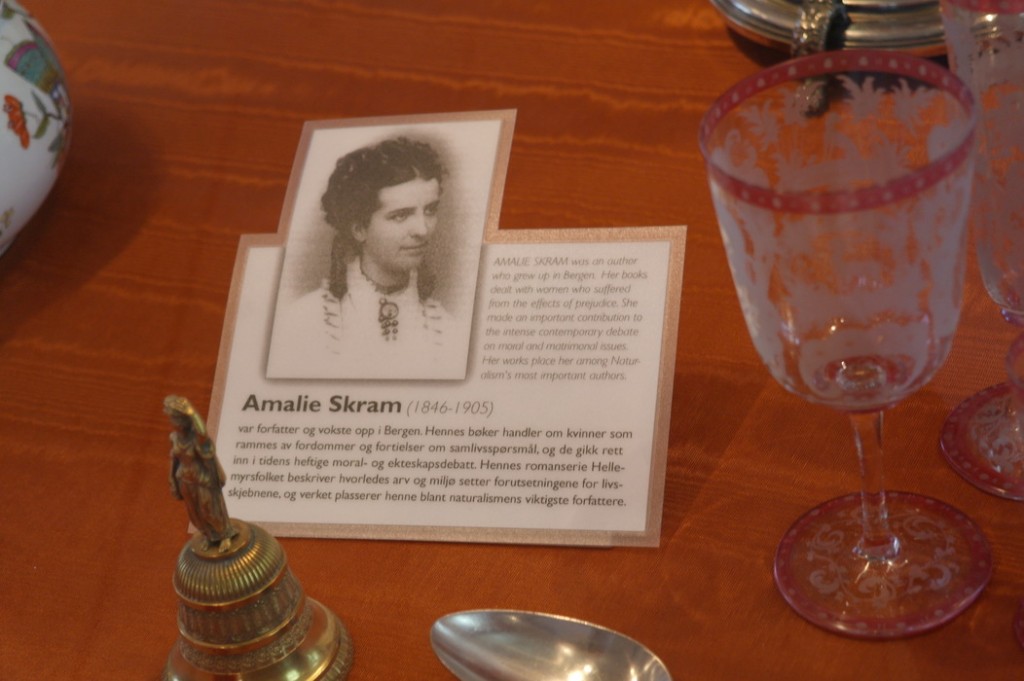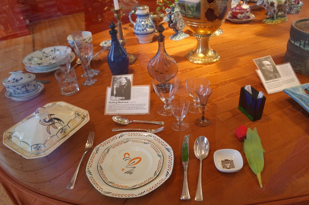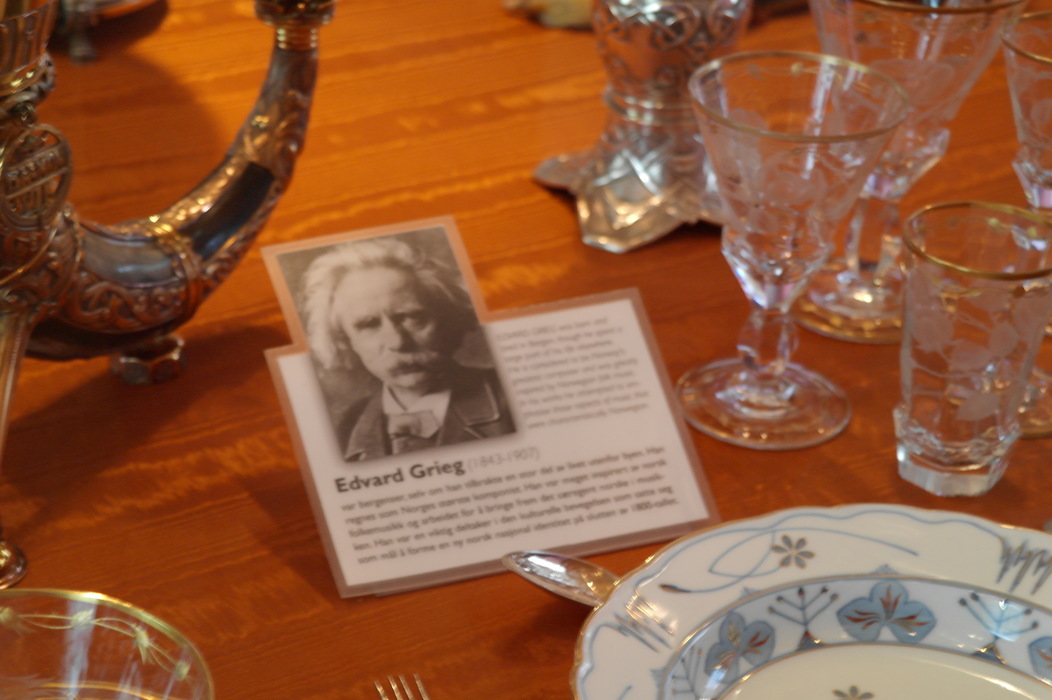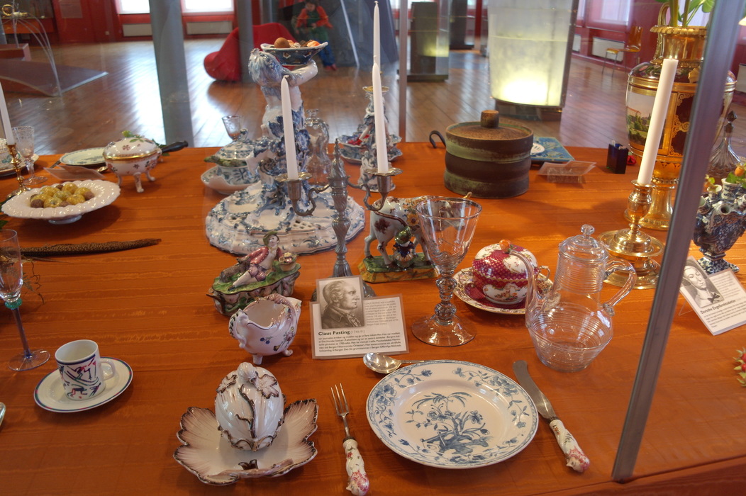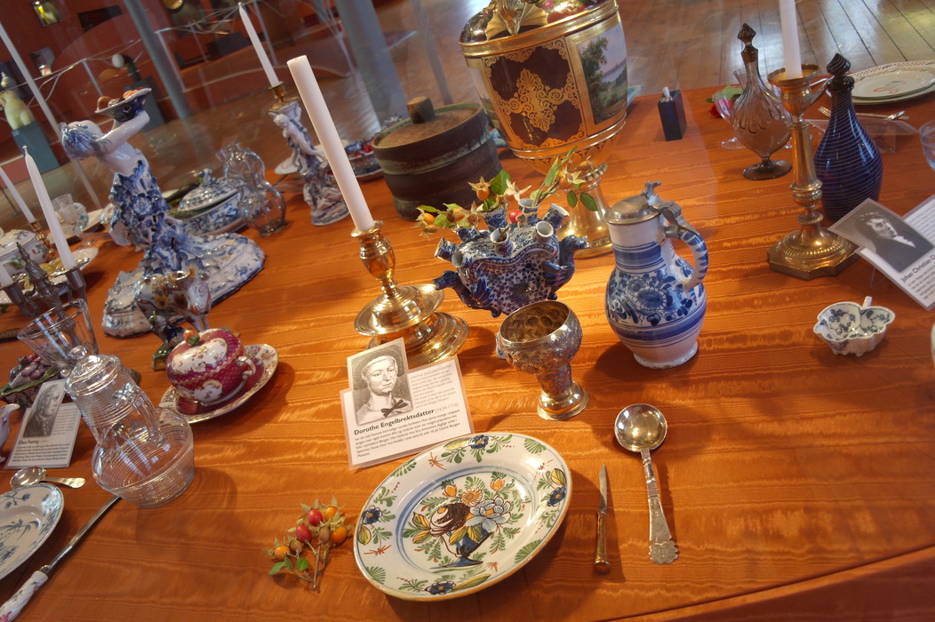 Исторический обед можно увидеть на выставке «Люди и вещи». За овальным столом расположились выдающиеся бергенцы. Биографии людей и историю нашего города рассказывают столовые приборы!