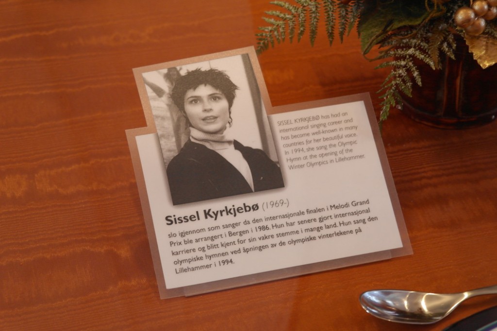 Sissel Kyrkjebø, норвежская певица. Она участвовала в церемонии закрытия Зимних Олимпийских игр в Лиллехаммере в 1994 году и в записи англоязычной версии гимна игр. Также она записала вокализ к фильму Титаник. Сиссель поет на многих языках, в том числе на русском.