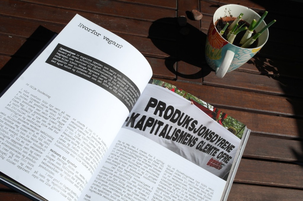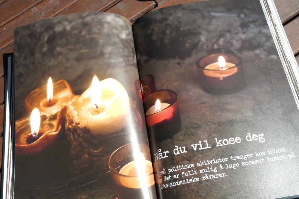 От себя лично я тоже поздравляю. Я сделала фотографии страниц книги в жаркий весенний день на бергенском балконе, среди цветочков и в 7 минутах от магазина органической и веганской еды. Не в суровых условиях и не в голодное время — вот, что я хочу сказать. Но когда публикую фотографии своего супа из эноки в интернете, я не говорю, что мой дом это анархистский инфорцентр, я не вывешиваю из окна черно-красных знамен и не пытаюсь выдавать буржуазный образ жизни за революционный.