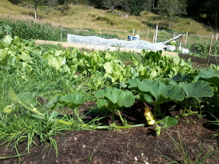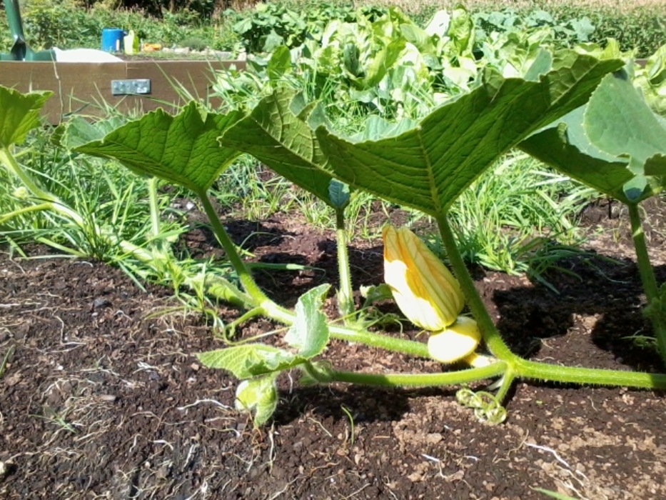 Это та самая тыква, которую Терентий получил на День Арборета. Он показывает, что должно вырасти, если всё правильно опылить. Хотя мы изучили теорию, опылить мы ничего не успели, пчелы справились сами и теперь неизвестно, кого мы получим.