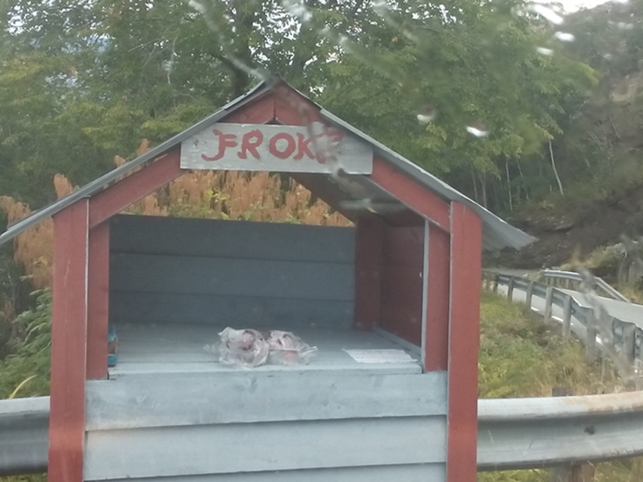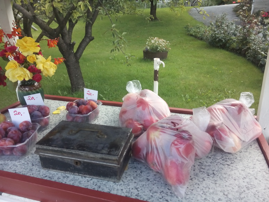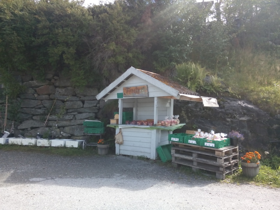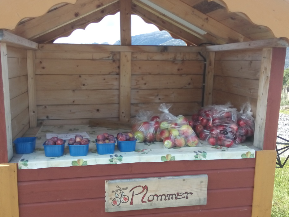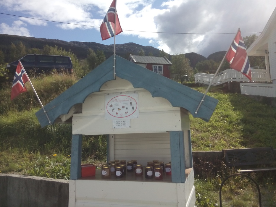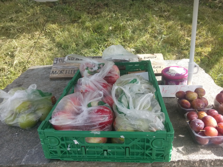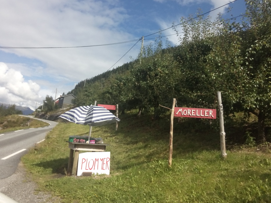 В этом году — несмотря на ураганы — в Йондале просто огромный урожай яблок. Кроме яблок разных сортов фермеры продают яблочный сок, варенье из ягод, сливы и зеленые груши. Грибов мы нашли не очень много. Слушали мы по дороге Тима Минчина, Le Flan de sang, Серебряную свадьбу, Океан Эльзы и S’aimer est interdit. По дороге в Восс мы взяли стопщика из Германии. Это наш сегодняшний маршрут (два парома).