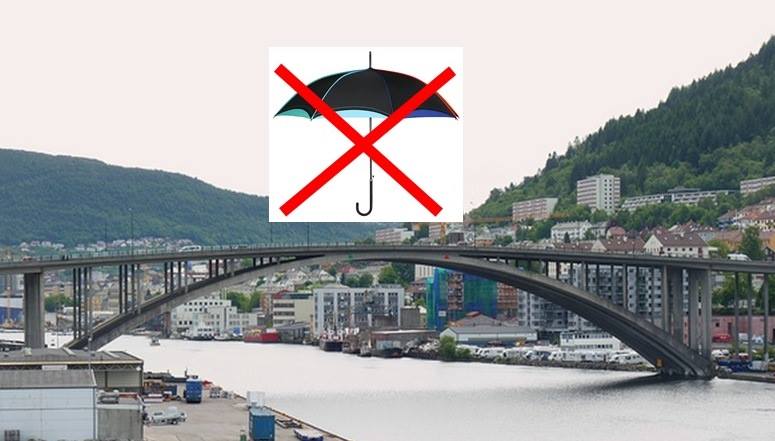Бергенский активист Per Kristian Sebak разместил эту картинку на своей странице в фэйсбук, чтобы предупредить горожан об опасности удара на мосту Puddefjordsbroen. Он пишет, что в 2006 году во время грозы он открыл на Puddefjordsbroen зонт и  сам стал жертвой молнии. Передвижение по открытой местности может вам стоить жизни и без зонта.