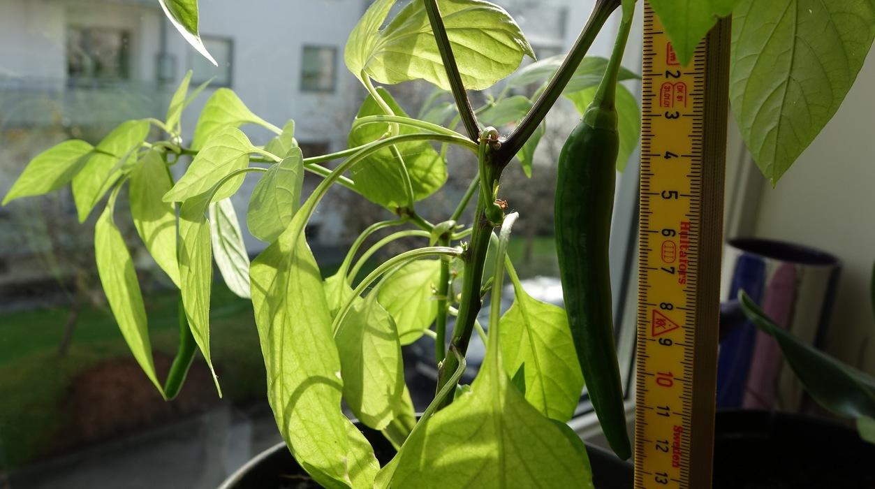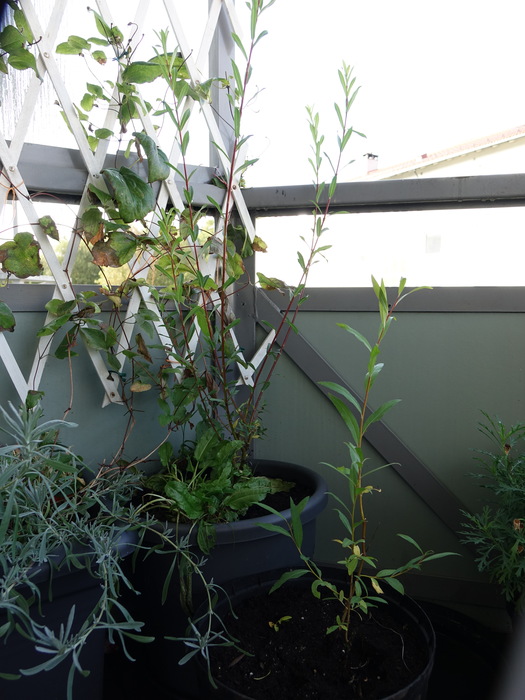 Перцы чили от Линн и Мартина продолжают расти, размер самого крупного 9 см. А на балконе у нас пошли в рост две ивы, купленные Терентием. Он послушал ботаников из Арборета и решил сам вырастить ветки и что-нибудь сплести. У одной ивы желтые стебли, а у другой красные. Кроме ив на балконе еще остается много растений. Это клубника, фуксии, пеларгония, ромашки, лаванда.