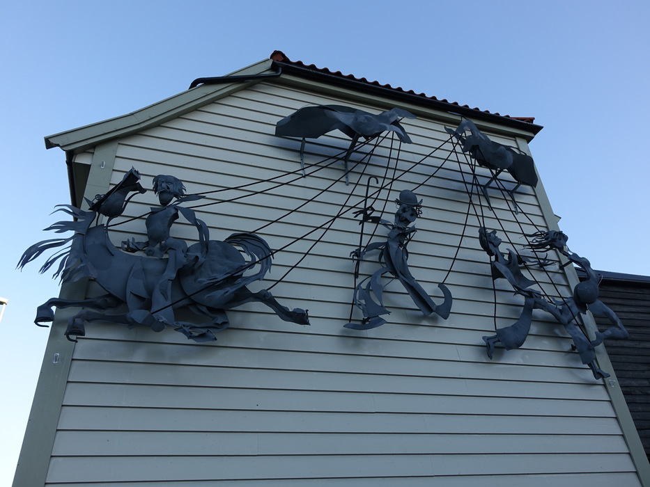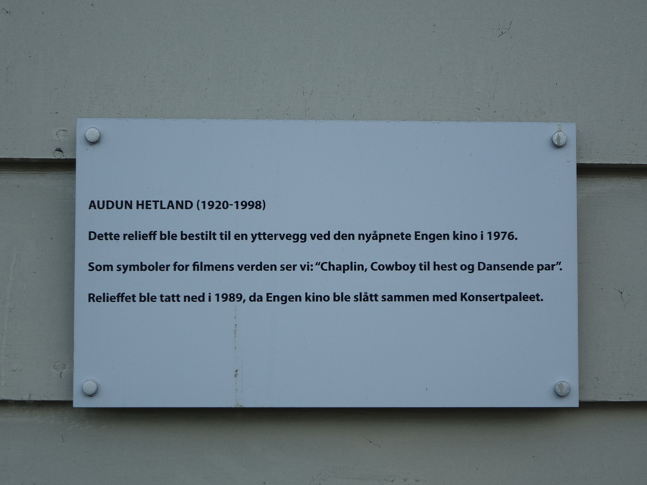 Три символа мирового кинематографа — ковбой на лошади, Чаплин с тростью и пара влюбленных — было изготовлены знаменитым бергенским художником Audun Hetland в 1976 году для Engen kino и в 1989 году в связи с преобразованиями в кинотеатре были убраны. Сейчас отреставрированное панно находится на доме рядом с экс-центральным бассейном на улице Nøstegaten. Чаплин побывал в Норвегии в 1964 году и по этому поводу его поклонники в Осло устроили факельное шествие.