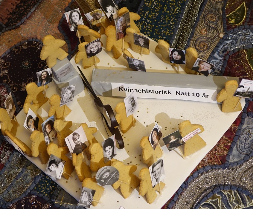 Нашу пряничную инсталляцию мы решили посвятить грядущему десятилетнему юбилею Женской исторической ночи — феминистской акции, которая была придумана в Бергене. Теперь уже во многих городах каждый год в день Женской исторической ночи, вечером 8 мая, активисты встречаются для того, чтобы высказаться против доминирования мужчин в пространстве города, истории, культуры.