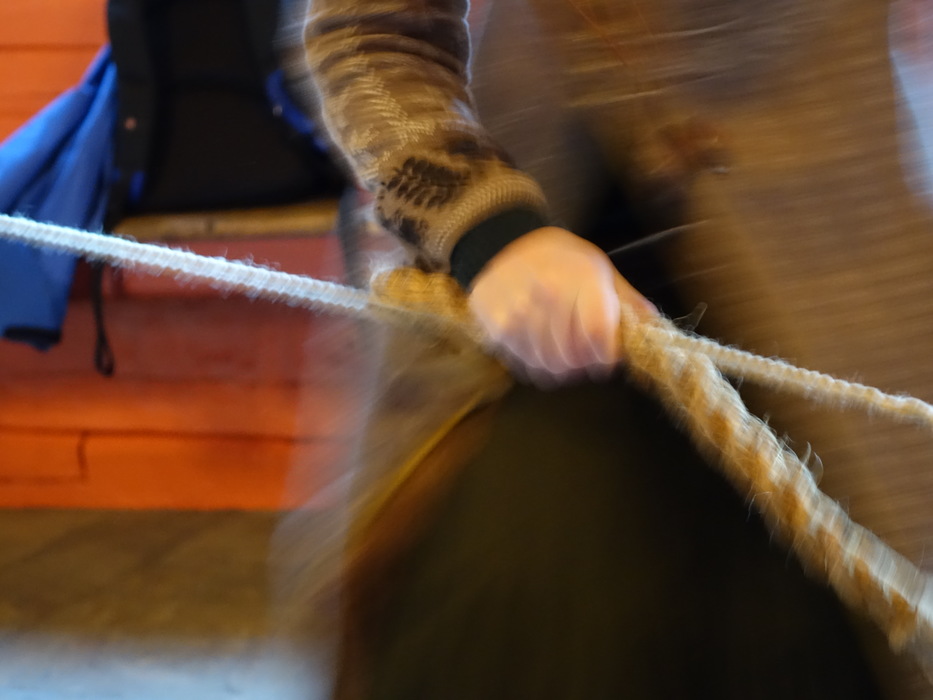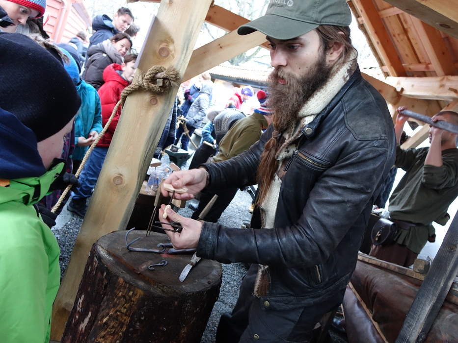 Темой дня было кузнечное дело. Каждый, кто смог простоять два часа в детской очереди, поучаствовал в изготовлении металлического брелка для ключей. В одном из сараев располагалась канатная мастерская.