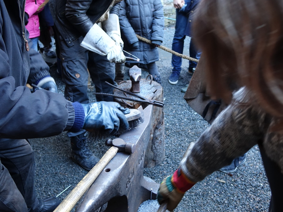 Работа шла на трех наковальнях одновременно. Кузнеца, который на фотографиях вместе с Терентием, зовут Johannes Fosse.