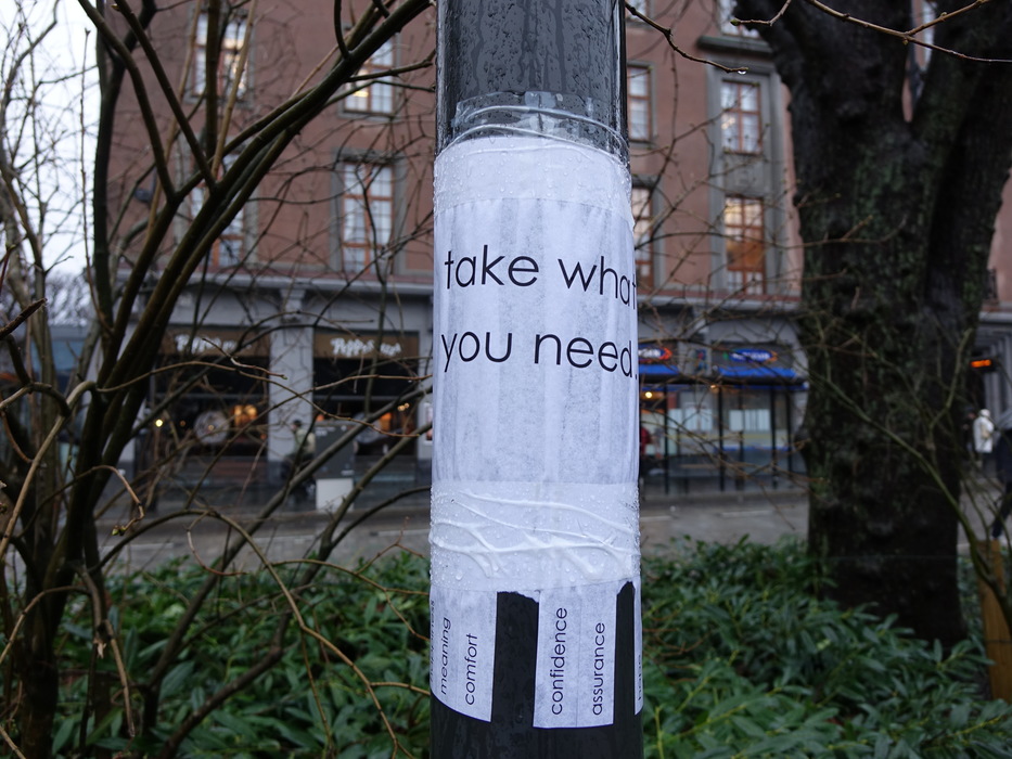На бипаркен появилось объявление «Возьми то, что тебе нужно.»