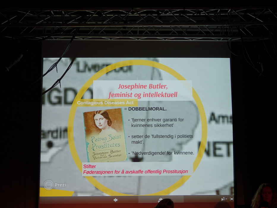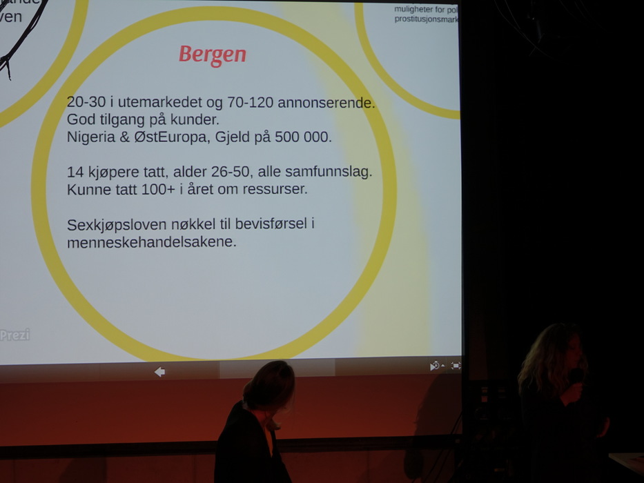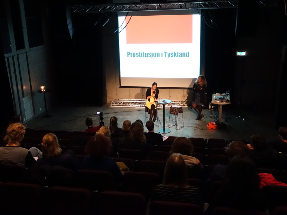 В 21.00 7 марта 2015 года 25 человек пришли в Тиволи (Det Akademiske Kvarter) на одно из мероприятий бергенского феминистского фестиваля, на лекцию «Покупка секса и проституция в Норвегии и Германии» (Sexkjøp og prostitusjon i Norge og Tyskland). Название такое странное потому, что названия и статусы самого явления в этих двух странах — полярные. Покупка секса в Норвегии законодательно запрещена, покупатель может попасть в тюрьму на полгода (на три года — в случае если проститутка несовершеннолетняя). Проституток в Норвегии не преследуют. в Германии есть легальные профсоюзы проституток и женщина, которая недовольна платой клиента, может пойти в суд.