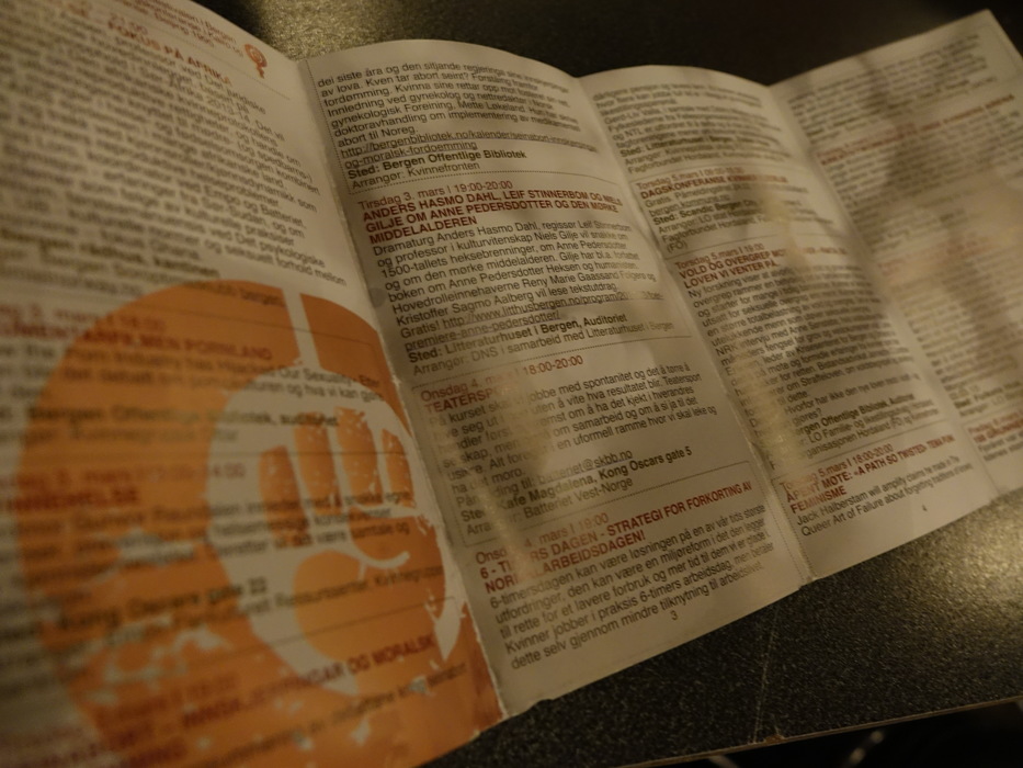 3 марта 2015 года в Empo (по инициативе Kvinnegruppen Sentrum) состоялась просветительская лекция о женском репродуктивном здоровье. В Литературном доме состоялась встреча с театральными деятелями; темой было сожжение ведьм в средние века. Гинеколог Mette Løkeland говорила про аборты в читальном зале Bergen Offentlige Bibliotek, в это же самое время в аудитории библиотеки женская группа Ottar устраивала кинопоказ и дискуссию о порноиндустрии. Я расскажу о последней встрече.