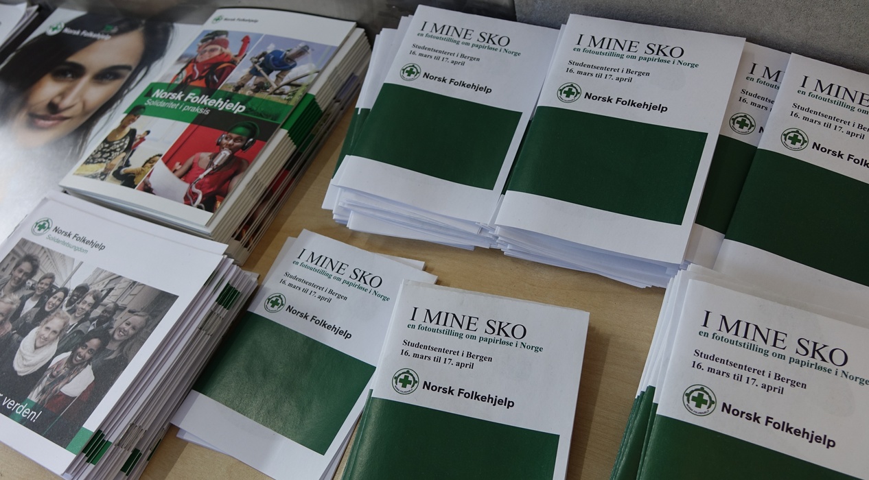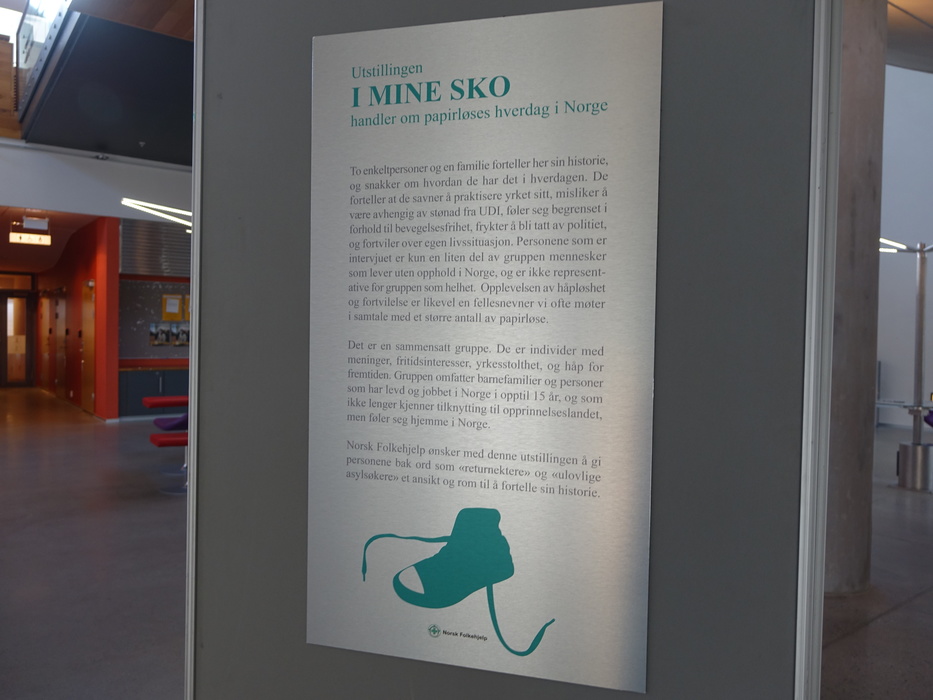 C 16 марта по 17 апреля 2015 года в холле второго этажа Студенческого центра (Parkveien 1) располагается несколько стендов аудио-визуальной выставки Ole Brodersen о повседневной жизни нелегальных беженцев «В моей обуви» («I mine sko»). Это три истории, которые можно послушать. Seyed, который прожил 11 лет без вида на жительство в Норвегии, семья Muradi (11 лет в Норвегии), Bezawit (16 лет в Норвегии). Выставка организована Norsk Folkehjelp Bergen og Solidaritetsungdommen i Bergen, на открытии выступала популярный политик нашего города и nestleder SV Oddny Miljeteig.